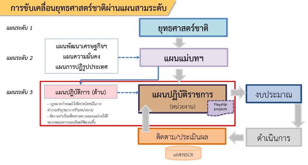 แผนระดับที่ 1 ยุทธศาสตร์ชาติ 20 ปี แผนระดับที่ 2 นโยบายและแผนระดับชาติว่าด้วยความมั่นคงแห่งชาติ (พ.ศ. 2566 – 2570) นโยบาย แผนแม่บทภายใต้ยุทธศาสตร์ชาติ พ.ศ.2566 – 2580 (ฉบับแก้ไขเพิ่มเติม)และแผนระดับชาติว่าด้วยความมั่นคงแห่งชาติ (พ.ศ. 2566 – 2570) แผนพัฒนาเศรษฐกิจและสังคมแห่งชาติ ฉบับที่ 13 แผนระดับที่ 3 แผนยุทธศาสตร์กรมส่งเสริมการเกษตร ระยะ 20 ปี พ.ศ. 2560 – 2579 แผนปฏิบัติราชการกรมส่งเสริมการเกษตรระยะ 5 ปี พ.ศ. 2565 – 2570 แผนปฎบัติราชการกรมส่งเสริมการเกษตรระยะ 5 ปี พ.ศ. 2565 – 2570 ฉบับปรับปรุง พ.ศ. 2567