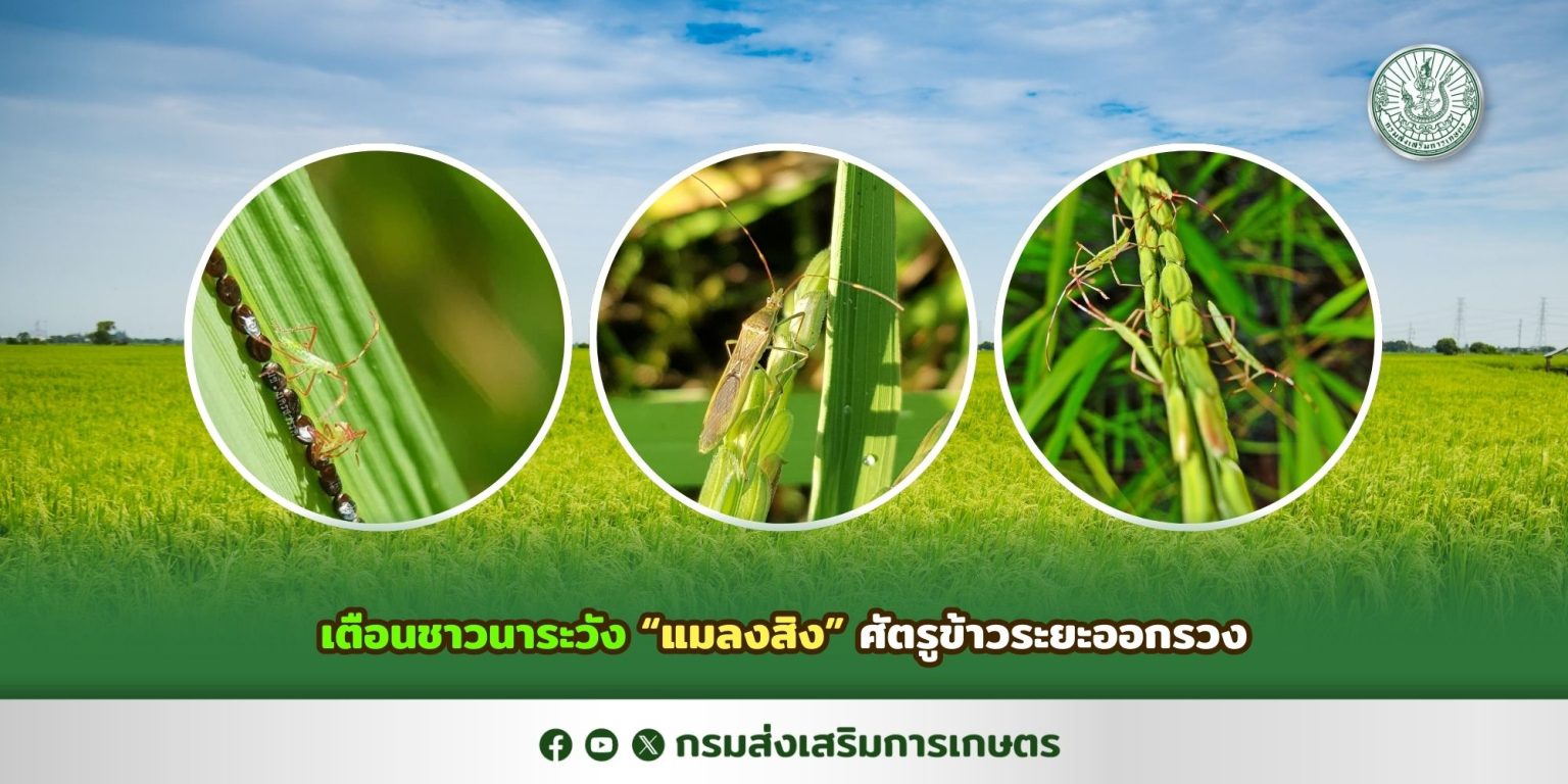 กรมส่งเสริมการเกษตร แจ้งเตือนเกษตรกรผู้ปลูกข้าว เฝ้าระวัง แมลงสิง แมลงศัตรูข้าวระยะออกรวง เนื่องจากพื้นที่ปลูกข้าวในประเทศเริ่มเข้าสู่ระยะออกรวงและเข้าสู่ระยะเก็บเกี่ยว ประมาณ 20 ล้านไร่ โดยข้อมูลจากระบบรายงานสถานการณ์ระบาดศัตรูพืชของพืชเศรษฐกิจหลักของกรมส่งเสริมการเกษตร ซึ่งเป็นระยะที่แมลงสิงจะเข้าทำลายในพื้นที่ปลูกข้าว จึงขอให้เกษตรกรหมั่นสำรวจแปลงนาของตนเองอย่างสม่ำเสมอ