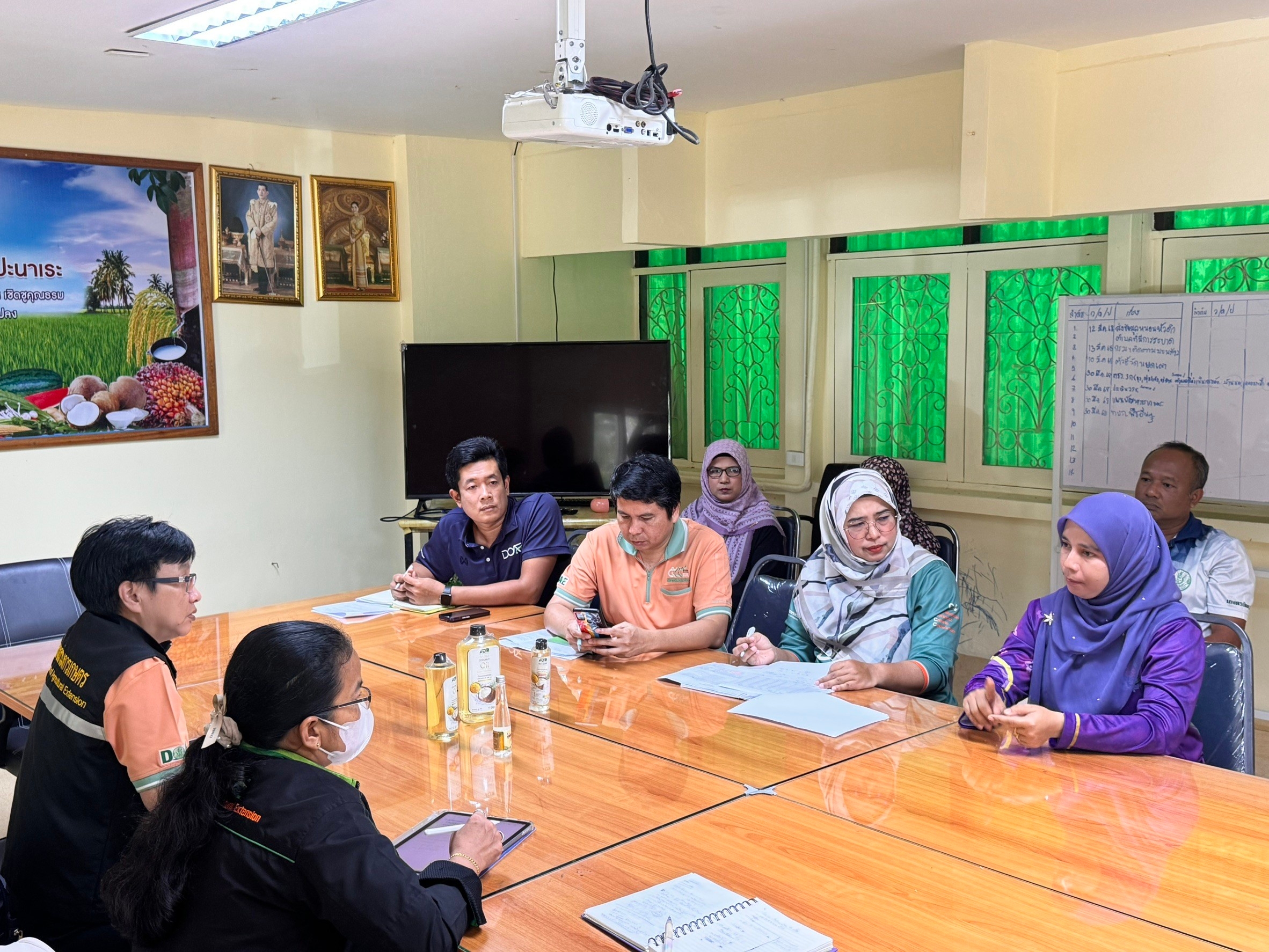 ____วันที่ 13 มีนาคม 2568 นางสาวศันสนีย์ นิติธรรมยง ผู้อำนวยการกลุ่มส่งเสริมไม้ยืนต้น สำนักส่งเสริมและจัดการสินค้าเกษตร พร้อมด้วยเจ้าหน้าที่กลุ่มส่งเสริมไม้ยืนต้น ได้ลงพื้นที่ติดตามโครงการทดสอบและถ่ายทอดเทคโนโลยีเพื่อเพิ่มผลิตภาพการผลิตสินค้าเกษตร และลงพื้นที่แปลงทดสอบเทคโนโลยีฯ โดยมีเจ้าหน้าที่สำนักงานส่งเสริมและพัฒนาการเกษตรที่ 5 จังหวัดสงขลา เจ้าหน้าที่อำเภอและจังหวัดเข้าร่วมติดตามโครงการฯ ซึ่งได้ให้คำแนะนำในการวิเคราะห์ตลาด การแปรรูปและการเพิ่มมูลค่ามะพร้าวด้วยการแปรรูปเป็นน้ำมันมะพร้าวที่มีคุณค่าทางโภชนาสูง รวมถึงการแก้ไขปัญหากาบมะพร้าวที่มีสารแทนนินสูงซึ่งไม่เป็นที่ต้องการของตลาด