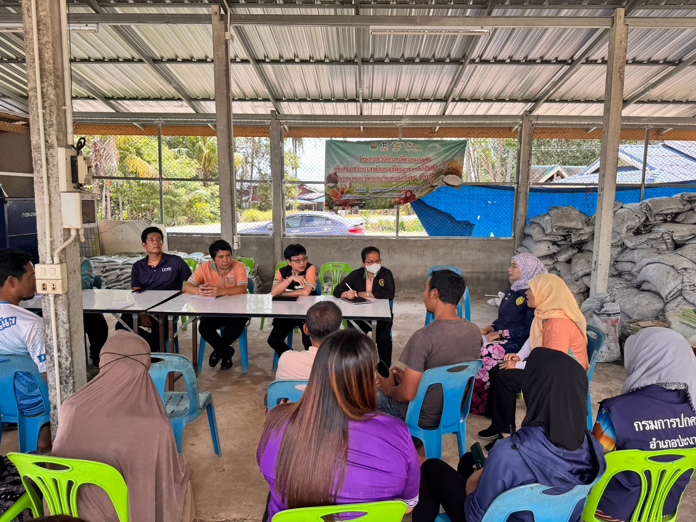 ____นอกจากนี้ จากการลงพื้นที่ยังพบว่าเกษตรกรในพื้นที่ยังคงมีเศษวัสดุเหลือใช้ทางการเกษตรที่ไม่สามารถกำจัดได้ คือ เส้นใยมะพร้าว จึงได้ให้คำแนะนำในการนำเส้นใยมะพร้าวไปใช้ประโยชน์ในการผลิตภาชนะขึ้นรูป การทำเชือกและผลิตภัณฑ์อื่นๆ เพื่อเพิ่มรายได้และส่งเสริมการจัดการมะพร้าวแบบครบวงจร ณ อำเภอปันนาเระ จังหวัดปัตตานี