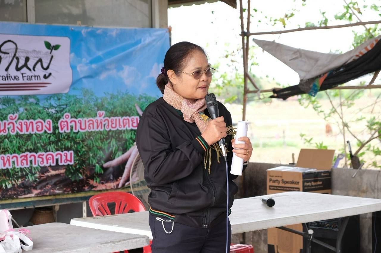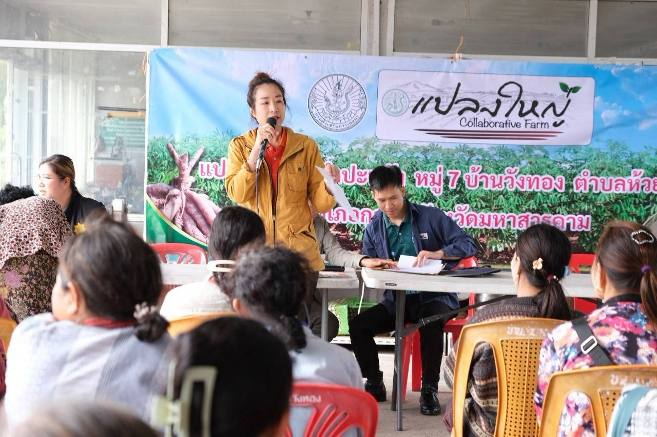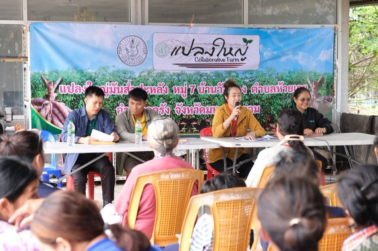 ____นอกจากนี้ยังได้รับความรู้ในการให้น้ำและปุ๋ยในมันสำปะหลังที่เหมาะสมกับช่วงระยะการเจริญเติบโต การใช้ข้อมูลสถิติน้ำฝนมาช่วยในการบริหารจัดการและวางแผนการผลิต ลดต้นทุนในส่วนที่ไม่จำเป็น เพิ่มผลผลิตและสร้างรายได้เพิ่มให้ได้ 3 เท่า ภายใน 4 ปี หลังจากนั้นได้ลงพื้นที่อำเภอโกสุมพิสัย เพื่อติดตามงานโครงการทดสอบและถ่ายทอดเทคโนโลยีเพื่อเพิ่มผลิตภาพการผลิตสินค้าเกษตร (มันสำปะหลัง) ปีงบประมาณ 2568 กลุ่มเกษตรกรที่เข้าร่วมโครงการฯ ได้มีการเตรียมพันธุ์และพื้นที่สำหรับทำแปลงส่งเสริมฯ 20 ไร่ และแปลงทดสอบ 8 ไร่ ซึ่งคาดว่าจะปลูกในเดือนเมษายนนี้