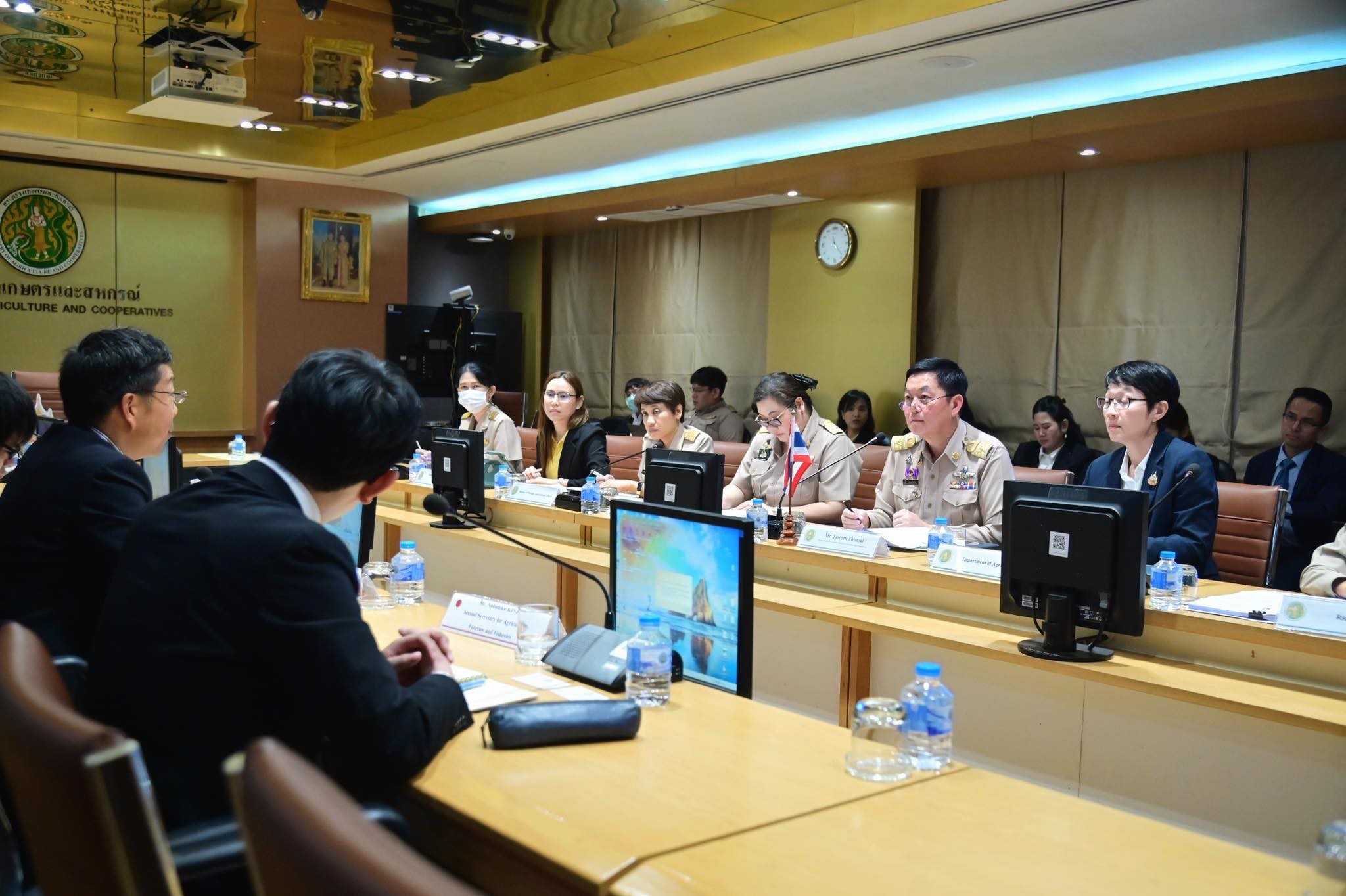 _____วันที่ 24 มีนาคม 2568 นางปดารณี ธรรมธร ผู้อำนวยการกลุ่มส่งเสริมพืชผักและเห็ด รักษาการในตำแหน่งผู้เชี่ยวชาญด้านส่งเสริมและจัดการการผลิตพืชผัก ไม้ดอกไม้ประดับและพืชสมุนไพร และนางสาวมารศรี วงศ์อนันทรัพย์ ผู้อำนวยการกลุ่มส่งเสริมไม้ดอกและไม้ประดับ พร้อมด้วยเจ้าหน้าที่ที่เกี่ยวข้องเข้าร่วมหารือ ณ ห้องประชุม 135 ชั้น 3 กระทรวงเกษตรและสหกรณ์ โดยมีนายถาวร ทันใจ รองปลัดกระทรวงเกษตรและสหกรณ์ เป็นประธานการหารือร่วมกับ นาย คะจิวาระ โทรุ อัครราชทูตและหัวหน้าฝ่ายเศรษฐกิจ สถานเอกอัครราชทูตประเทศญี่ปุ่น ประจำประเทศไทย (Mr. Kajiwara Toru : Minister and Chief of Economic Section) มีจุดประสงค์ที่เกี่ยวข้องกับกรมส่งเสริมการเกษตร ได้แก่ การเข้าร่วมงาน Yokohama Expo 2027 อย่างเป็นทางการของประเทศไทย ซึ่งได้รายงานความคืบหน้าในการดำเนินการอยู่ระหว่างกระบวนการเพื่อให้คณะรัฐมนตรีพิจารณาอนุมัติการเข้าร่วมการจัดงานและกรอบวงเงินงบประมาณ ปี 2569 – 2571 สำหรับการเข้าร่วมการจัดงานของประเทศไทย ซึ่งสำนักเลขาธิการคณะรัฐมนตรี (สลค.) ได้แจ้งเวียนหน่วยงานที่เกี่ยวข้องให้ข้อคิดเห็นและรายละเอียดเพิ่มเติมเพื่อประกอบการพิจารณาของคณะรัฐมนตรีแล้ว ทั้งนี้ อยู่ระหว่างรอเสนอเรื่องเข้าคณะรัฐมนตรีพิจารณาต่อไป