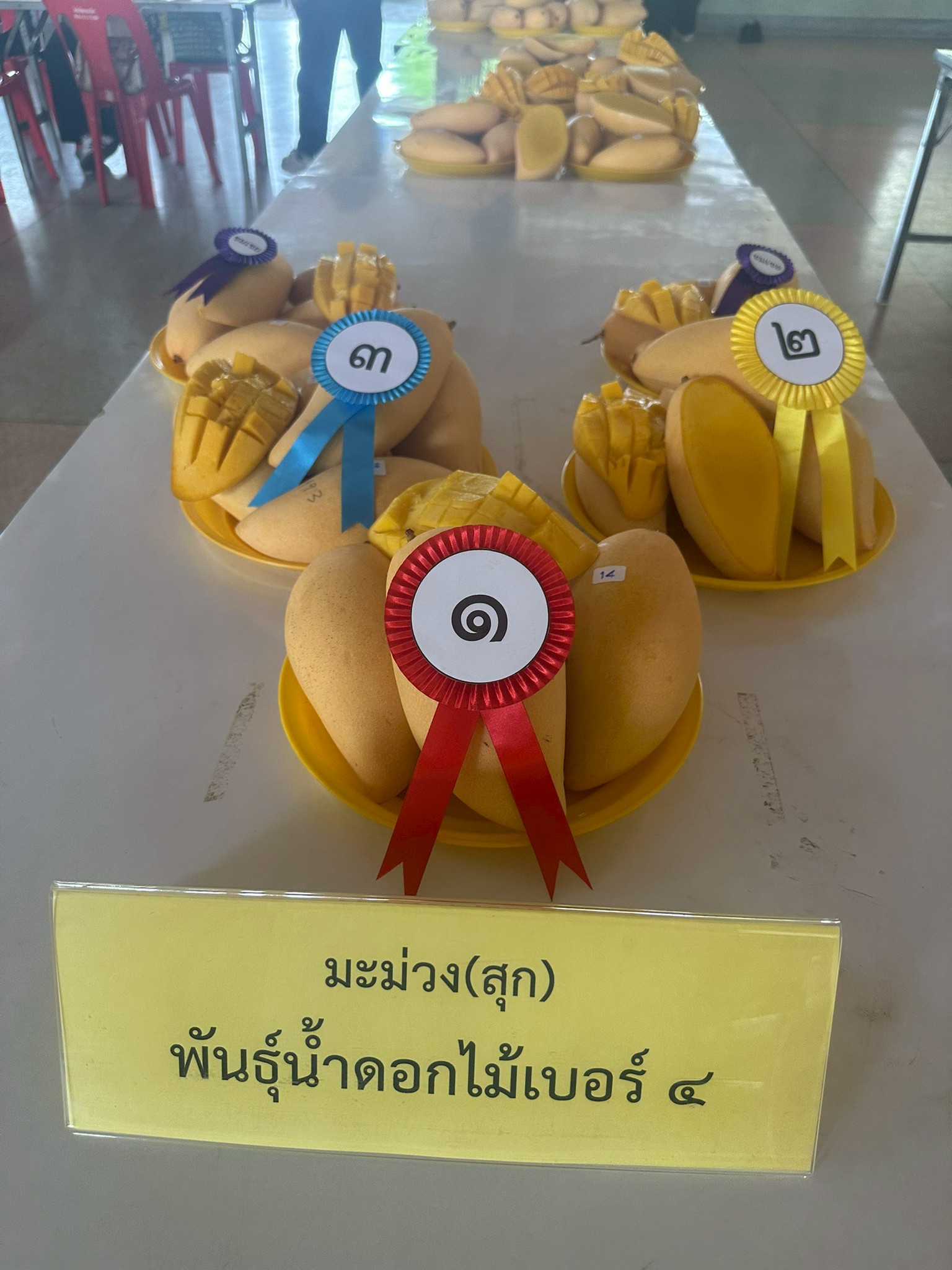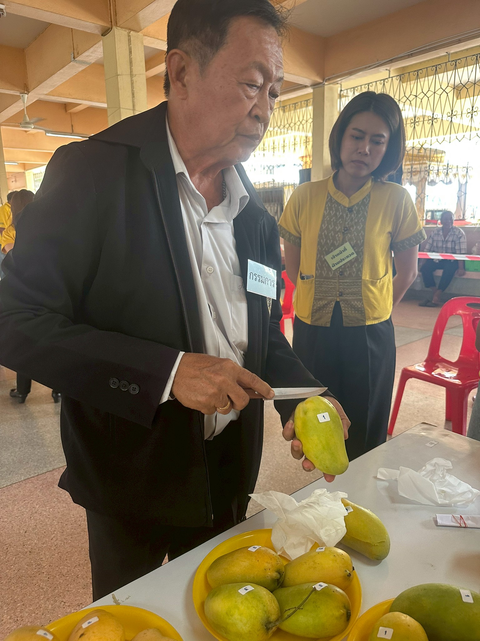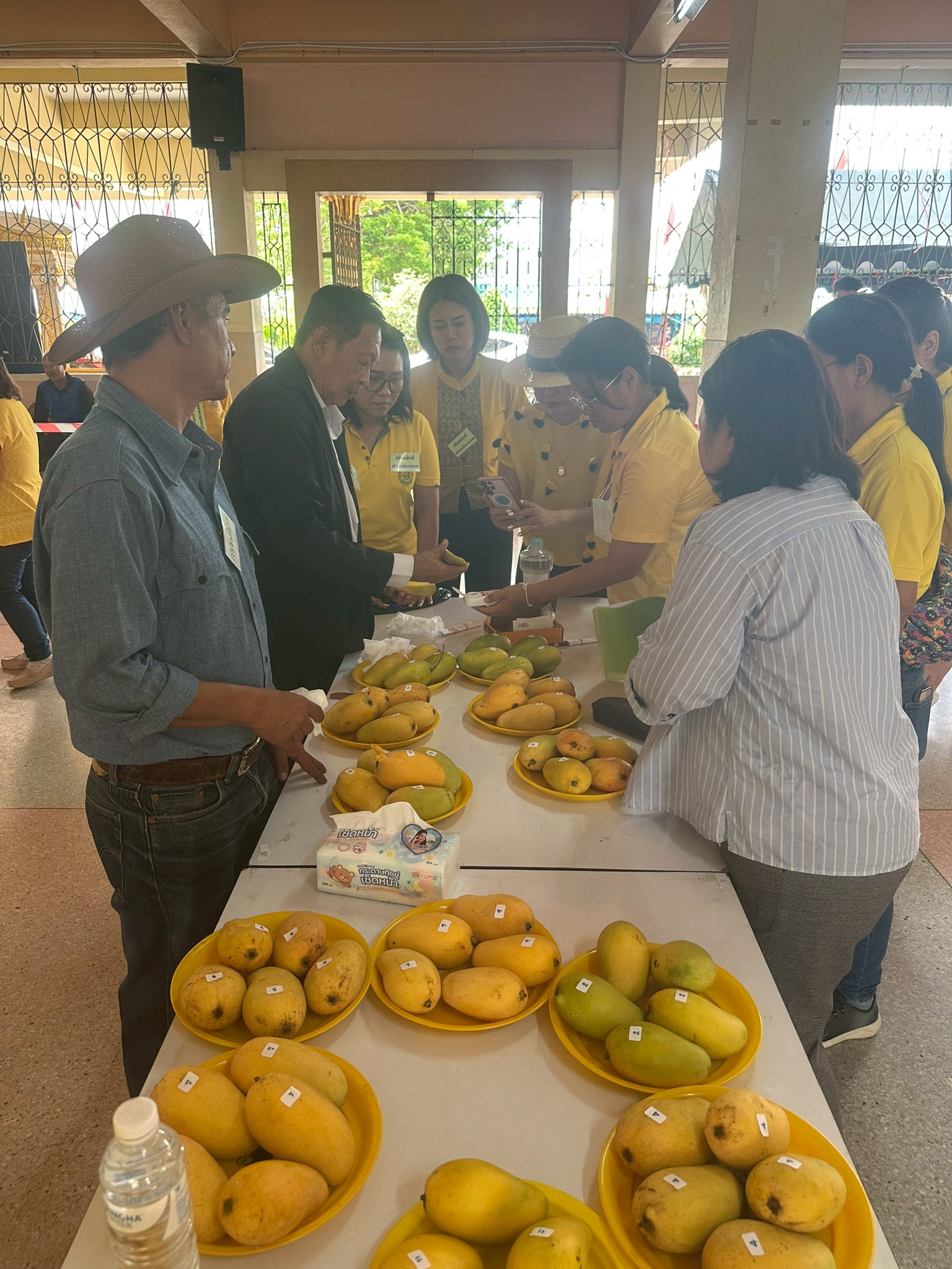 _____วันที่ 27 มีนาคม 2568 นางสาวทัศนา คิดสร้าง ผู้อำนวยการกลุ่มส่งเสริมไม้ผล และนายจิรพันธ์ พงศาปาน นักวิชาการเกษตร กลุ่มส่งเสริมไม้ผล ร่วมเป็นคณะกรรมการตัดสินการประกวดผลไม้ในงานวันมะม่วงและของดีเมืองแปดริ้ว ครั้งที่ 54 ประจำปี 2568 ณ โรงเรียนวัดโสธรวรารามวรวิหาร อำเภอเมืองฉะเชิงเทรา จังหวัดฉะเชิงเทรา ซึ่งได้ร่วมตัดสินมะม่วงประเภทรับประทานผลสุก 4 ประเภท ได้แก่ พันธุ์แรด น้ำดอกไม้สีทอง น้ำดอกไม้เบอร์ 4 และน้ำดอกไม้ (ผลใหญ่) โดยมีเกษตรกรให้ความร่วมมือส่งผลผลิตจำนวนมากเพื่อเป็นการประชาสัมพันธ์ผลผลิตมะม่วงคุณภาพของดีเมืองแปดริ้วได้อย่างแพร่หลายต่อไป