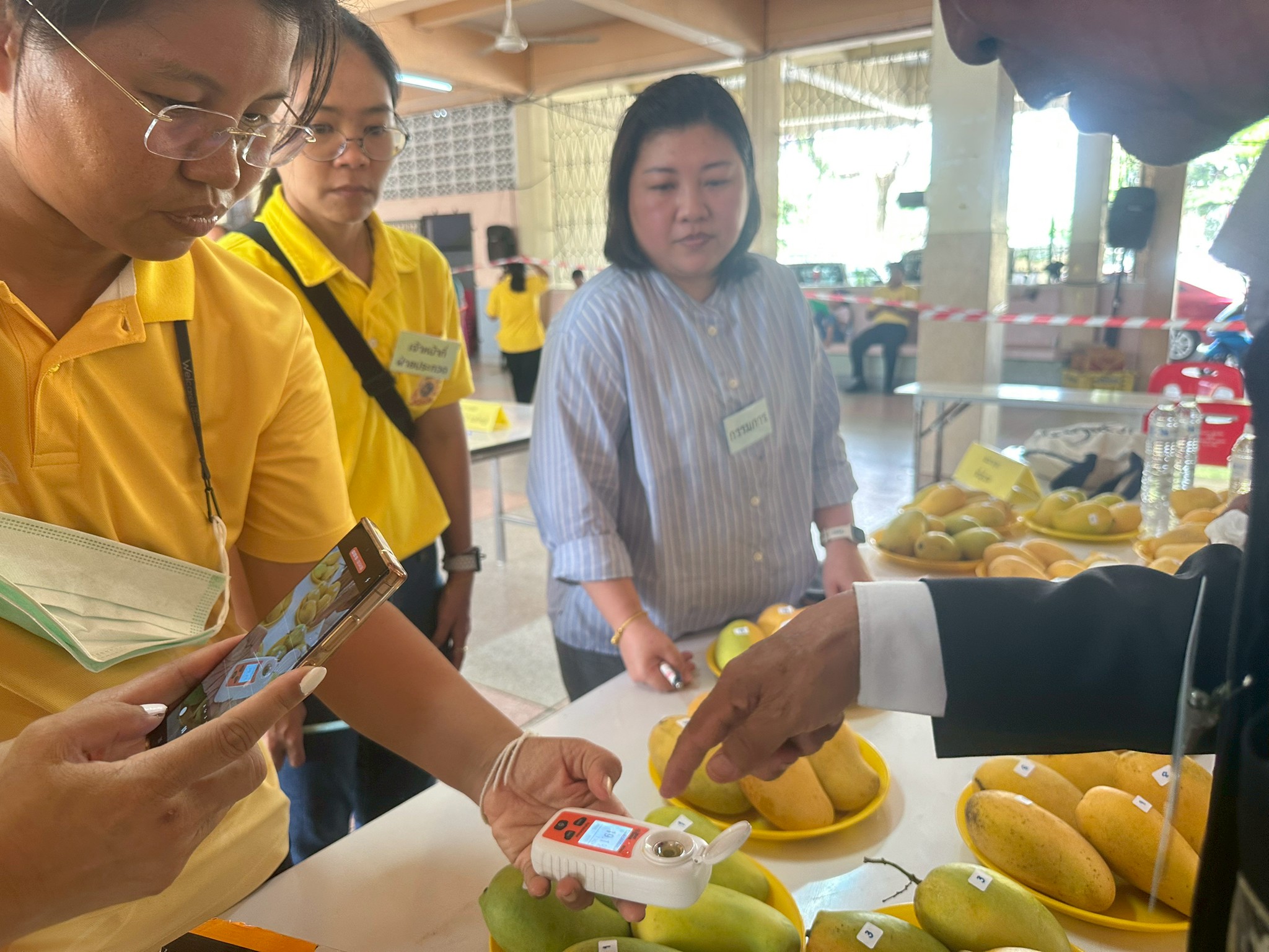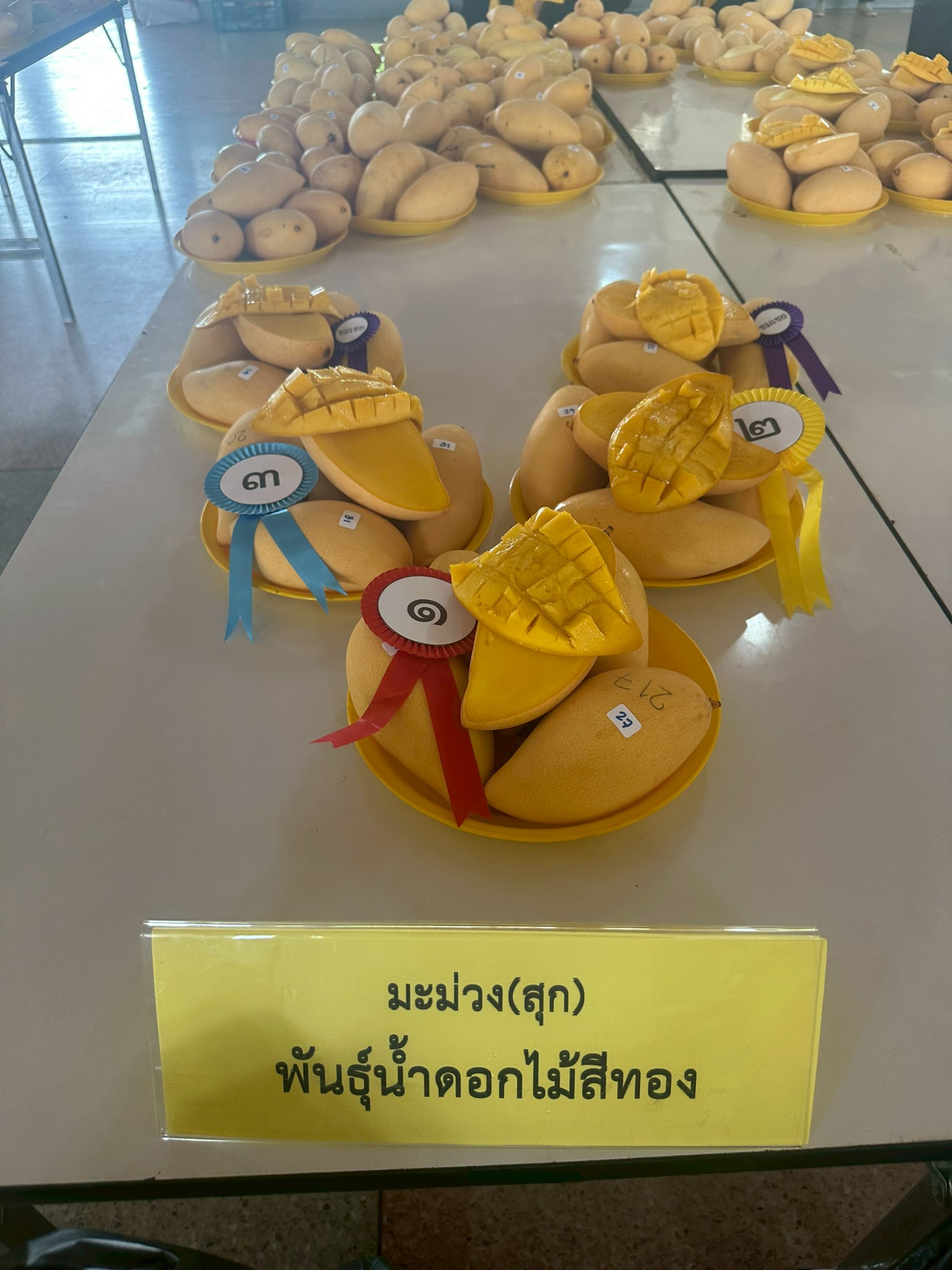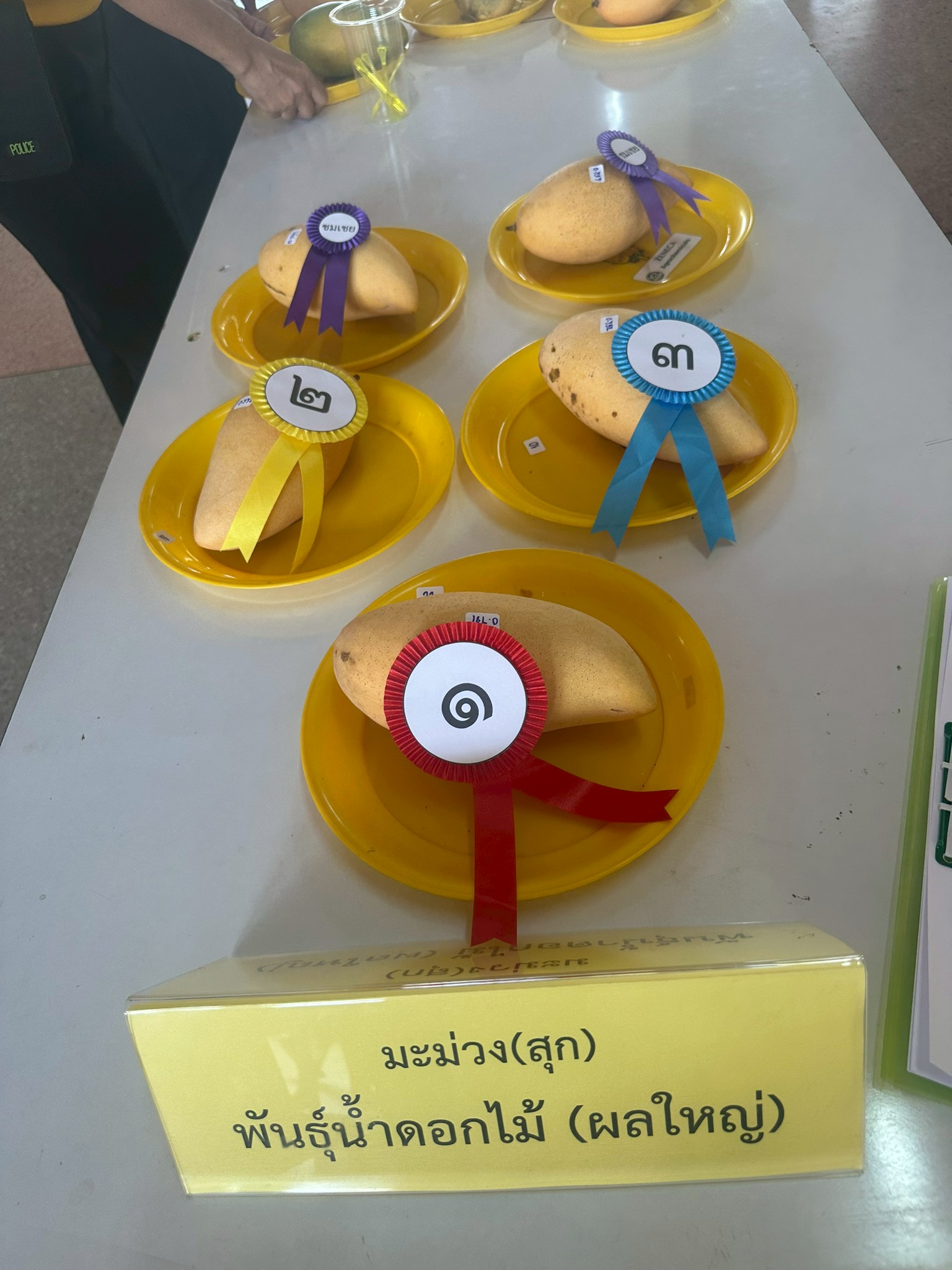 _____วันที่ 27 มีนาคม 2568 นางสาวทัศนา คิดสร้าง ผู้อำนวยการกลุ่มส่งเสริมไม้ผล และนายจิรพันธ์ พงศาปาน นักวิชาการเกษตร กลุ่มส่งเสริมไม้ผล ร่วมเป็นคณะกรรมการตัดสินการประกวดผลไม้ในงานวันมะม่วงและของดีเมืองแปดริ้ว ครั้งที่ 54 ประจำปี 2568 ณ โรงเรียนวัดโสธรวรารามวรวิหาร อำเภอเมืองฉะเชิงเทรา จังหวัดฉะเชิงเทรา ซึ่งได้ร่วมตัดสินมะม่วงประเภทรับประทานผลสุก 4 ประเภท ได้แก่ พันธุ์แรด น้ำดอกไม้สีทอง น้ำดอกไม้เบอร์ 4 และน้ำดอกไม้ (ผลใหญ่) โดยมีเกษตรกรให้ความร่วมมือส่งผลผลิตจำนวนมากเพื่อเป็นการประชาสัมพันธ์ผลผลิตมะม่วงคุณภาพของดีเมืองแปดริ้วได้อย่างแพร่หลายต่อไป