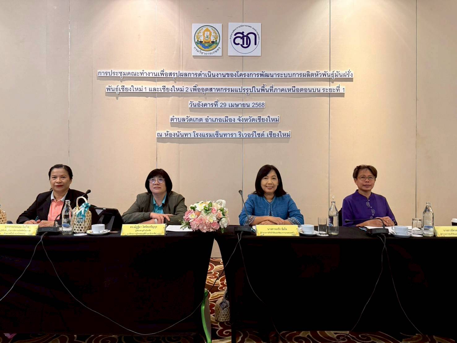 _____วันที่ 29 เมษายน 2568 นางปดารณี ธรรมธร ผู้อำนวยการกลุ่มส่งเสริมพืชผักและเห็ด สำนักส่งเสริมและจัดการสินค้าเกษตร และนายตราพฤกษ์ ธัญญเกษตร นักวิชาการเกษตรชำนาญการ เข้าร่วมการประชุมคณะทำงานสรุปผลการดำเนินงาน โครงการพัฒนาระบบการผลิตหัวพันธุ์มันฝรั่ง พันธุ์เชียงใหม่ 1 และเชียงใหม่ 2 เพื่ออุตสาหกรรมแปรรูปในพื้นที่ภาคเหนือตอนบน ระยะที่ 1 ซึ่งจัดโดยศูนย์วิจัยและพัฒนาการเกษตรเชียงใหม่ กรมวิชาการเกษตร ณ โรงแรมเซ็นทารา ริเวอร์ไซด์ เชียงใหม่ ตำบลวัดเกต อำเภอเมือง จังหวัดเชียงใหม่ ผู้เข้าร่วมงานประกอบด้วยหน่วยงานจากภาครัฐ ภาคเอกชน สถาบันการศึกษา เกษตรกร รวมทั้งสหกรณ์ผู้ปลูกมันฝรั่งในพื้นที่ภาคเหนือตอนบน จำนวน 60 ราย