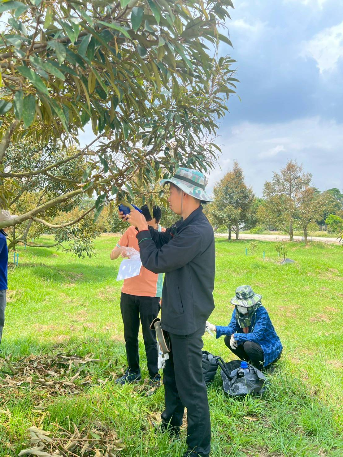 _____ช่วงเช้า ลงพื้นที่ร่วมดำเนินโครงการแปลงวิจัยไม้ผลภาคตะวันออก ณ ศูนย์ส่งเสริมและพัฒนาอาชีพการเกษตร จังหวัดระยอง ซึ่งเป็นงานวิจัยไม้ผลเพื่อทำการศึกษาความสัมพันธ์ของการให้น้ำของต้นทุเรียนในระดับต่างๆกับปริมาณคลอโรฟิลด์ที่สะสมอยู่ในใบทุเรียน