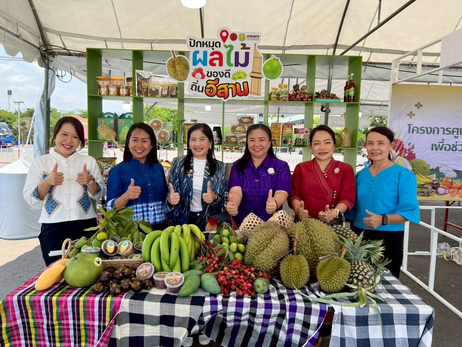 _____โดยวัตถุประสงค์ของการจัดกิจกรรม “ปักหมุดผลไม้ของดีถิ่นอีสาน” ภายใต้แนวคิด อ.ต.ก. แฟร์ 4 ภาค เป็นกิจกรรมที่ส่งเสริมตลาดผู้บริโภคผลไม้ไทยในแต่ละภาค เพื่อเตรียมความพร้อมก่อนที่ผลผลิตจะออกสู่ตลาด โดยนำร่องในพื้นที่กลุ่มภาคตะวันออกเฉียงเหนือ เป็นการสร้างช่องทางจำหน่าย กระจายผลไม้สดในฤดูกาล สินค้าเกษตรแปรรูปที่ผลิตจากผลไม้ ที่มีคุณภาพมาตรฐาน ได้แก่ GI GAP GMP HACCP เป็นต้น ตลอดจนส่งเสริมประชาสัมพันธ์ผลผลิตของเกษตรกร วิสาหกิจชุมชน และสถาบันเกษตรกร ให้เป็นที่รู้จักแก่ผู้บริโภค พร้อมทั้ง เปิดโอกาสให้เกษตรกรได้ทราบถึงความต้องการของผู้บริโภค เพื่อนำไปพัฒนาพัฒนาสินค้าของตนเอง เพื่อเพิ่มมูลค่าและสร้างรายได้อย่างยั่งยืน โดยมีเกษตรกรจากทั่วประเทศเข้าร่วมจำหน่ายผลไม้และสินค้าทางการเกษตร จำนวน 50 กลุ่ม