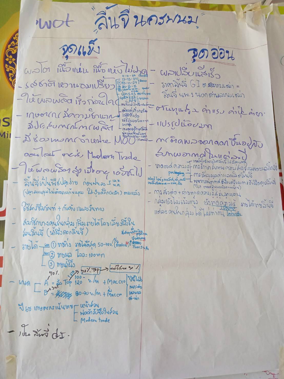 _____วันที 1 – 3 พฤษภาคม 2568 นางสาวทัศนา คิดสร้าง ผู้อำนวยการกลุ่มส่งเสริมไม้ผล และเจ้าหน้าที่กลุ่มส่งเสริมไม้ผล สำนักส่งเสริมและจัดการสินค้าเกษตร ร่วมกับเจ้าหน้าที่สำนักงานส่งเสริมและพัฒนาการเกษตรที่ 4 จังหวัดขอนแก่น สำนักงานเกษตรจังหวัดนครพนม สำนักงานเกษตรอำเภอเมืองนครพนม และเกษตรกรแปลงใหญ่ลิ้นจี่นครพนม ร่วมกันจัดเวที Focus group ณ แปลงเรียนรู้การผลิตไม้ผลอัตราลักษณ์ ของนางรัศมี อุทาวงค์ เพื่อถอดบทเรียนปัจจัยแห่งความสำเร็จในกรณี (ลิ้นจี่ นพ.1) จังหวัดนครพนม ซึ่งเป็นผลไม้อัตลักษณ์ที่ได้รับรอง GI โดยใช้เทคนิค Mind map การวิเคราะห์ SWOT Result chain และProblem tree ทำให้ทราบถึงปัจจัยที่ทำให้ลิ้นจี่ นพ.1 จังหวัดนครพนม ประสบความสำเร็จ ได้แก่ 1. เครือข่ายความร่วมมือ 2. การประชาสัมพันธ์ 3. เทคโนโลยีนวัตกรรม ซึ่งทางกลุ่มส่งเสริมไม้ผลจะนำข้อมูลไปขยายผลให้กับกลุ่มเกษตรกรรายอื่นๆ ในโครงการต่อไป