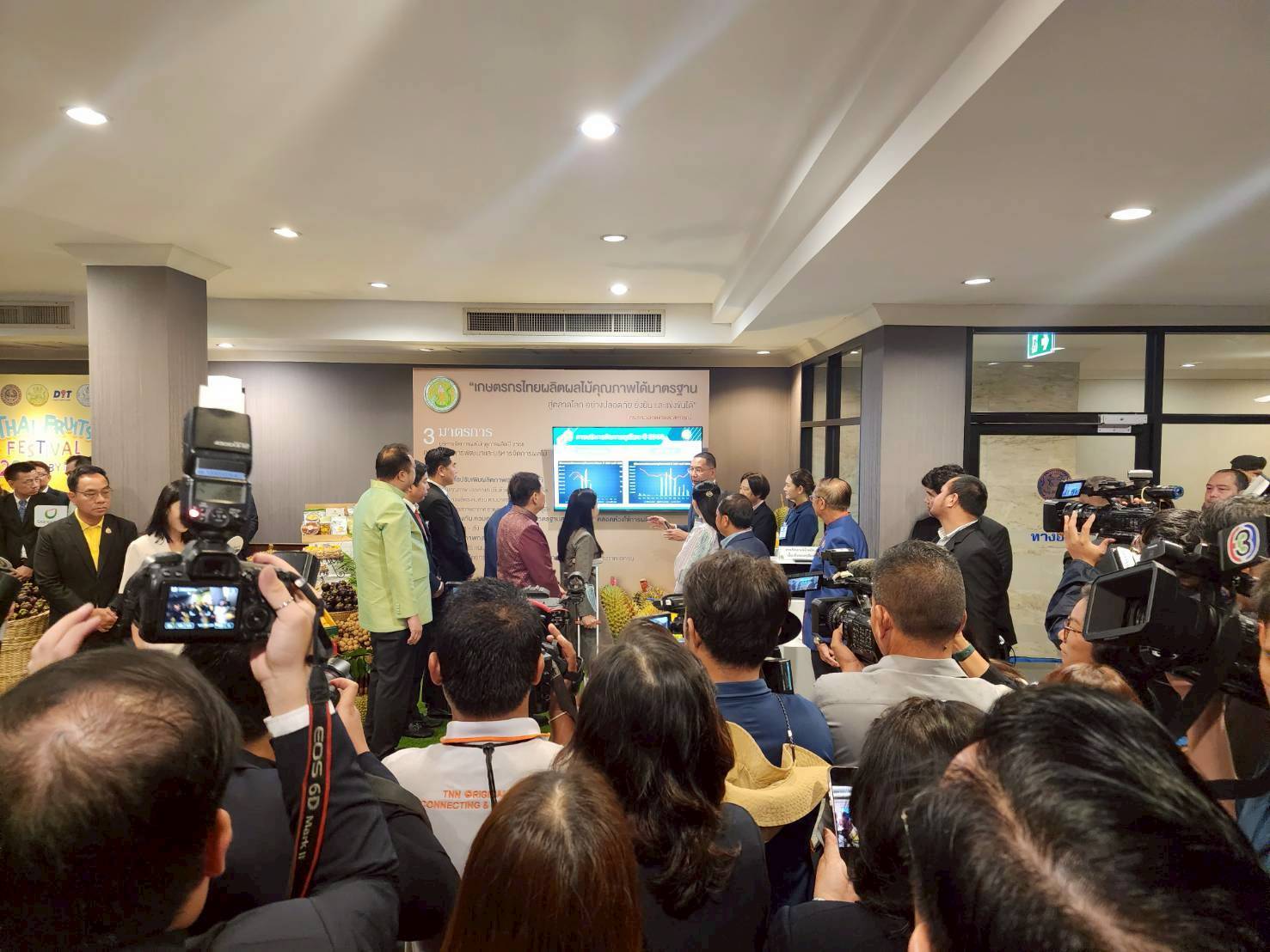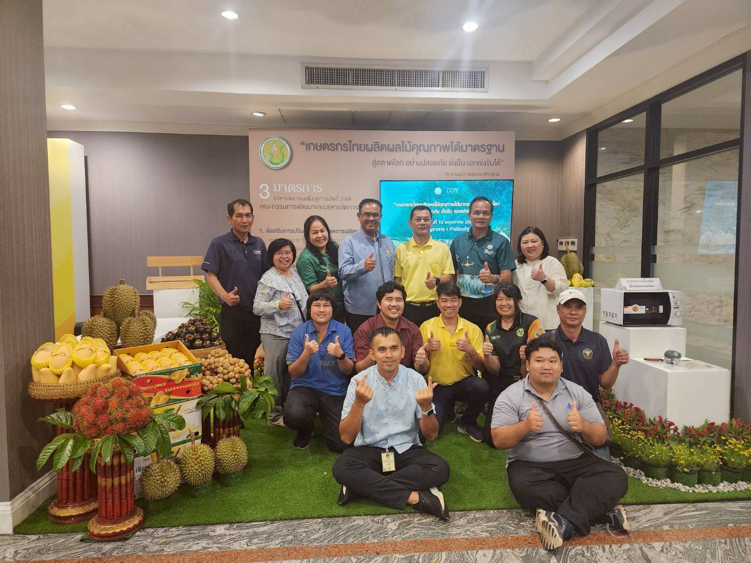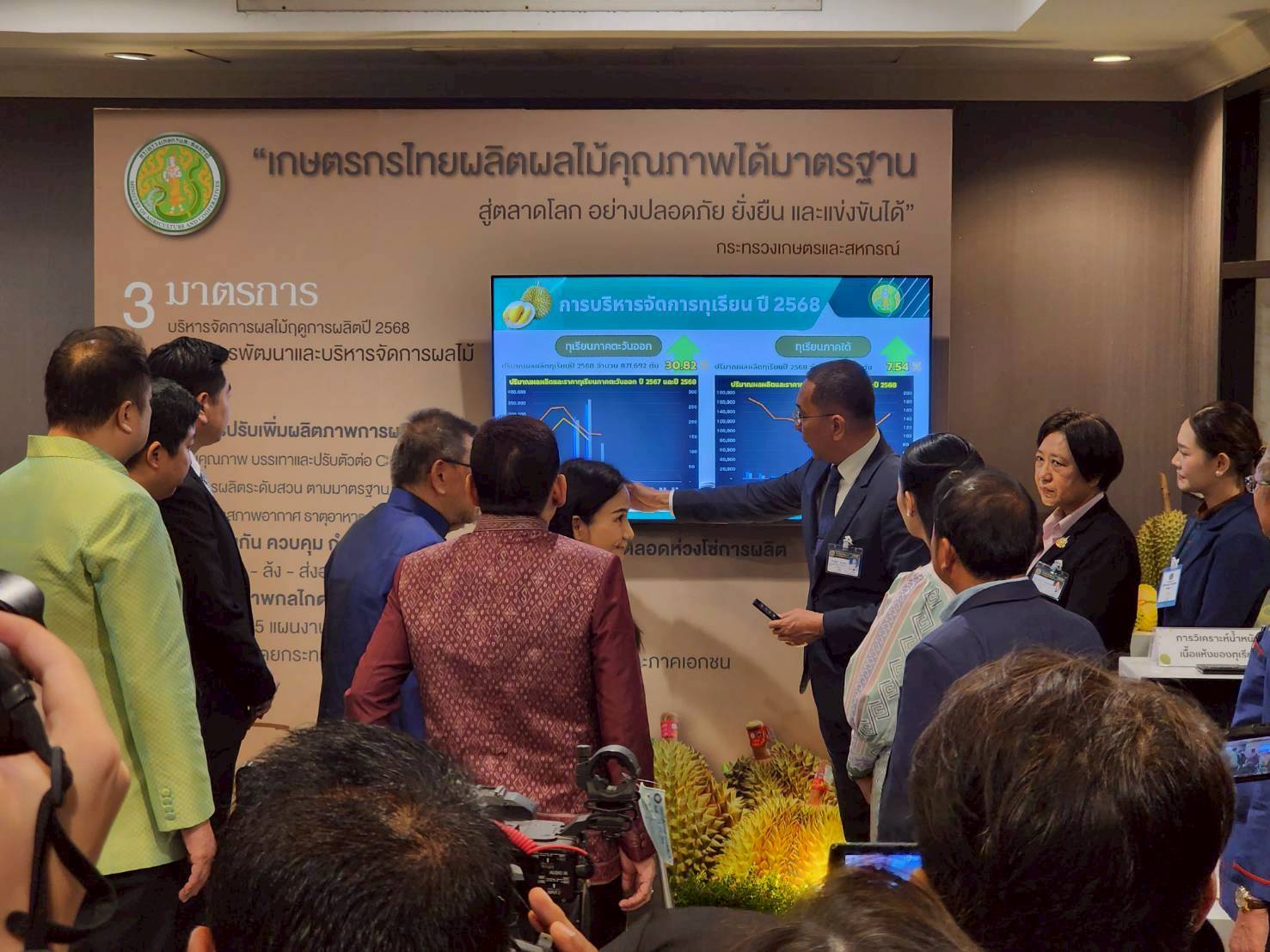 _____วันอังคารที่ 13 พฤษภาคม 2568 นายวุฒิชัย ชิณวงศ์ ผู้อำนวยการสำนักส่งเสริมและจัดการสินค้าเกษตร พร้อมด้วยนางสาวทัศนา คิดสร้าง ผู้อำนวยการกลุ่มส่งเสริมไม้ผล และคณะ เป็นเจ้าภาพจัดงานรายงานสถานการณ์ผลไม้ และมาตรการในการบริหารจัดการผลไม้ ภายใต้ Fruit Board ของกรมส่งเสริมการเกษตร ในนามกระทรวงเกษตรและสหกรณ์แก่นายกรัฐมนตรีในกิจกรรมนายกรัฐมนตรีพบผู้ประกอบการผลไม้ เพื่อยกระดับเกษตรกรไทยผลิตผลไม้คุณภาพได้มาตรฐานสู่ตลาดสากล ณ ตึกบัญชาการ 1 ทำเนียบรัฐบาล