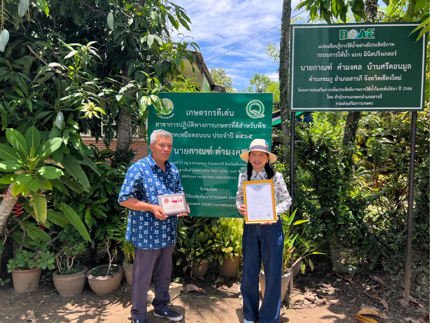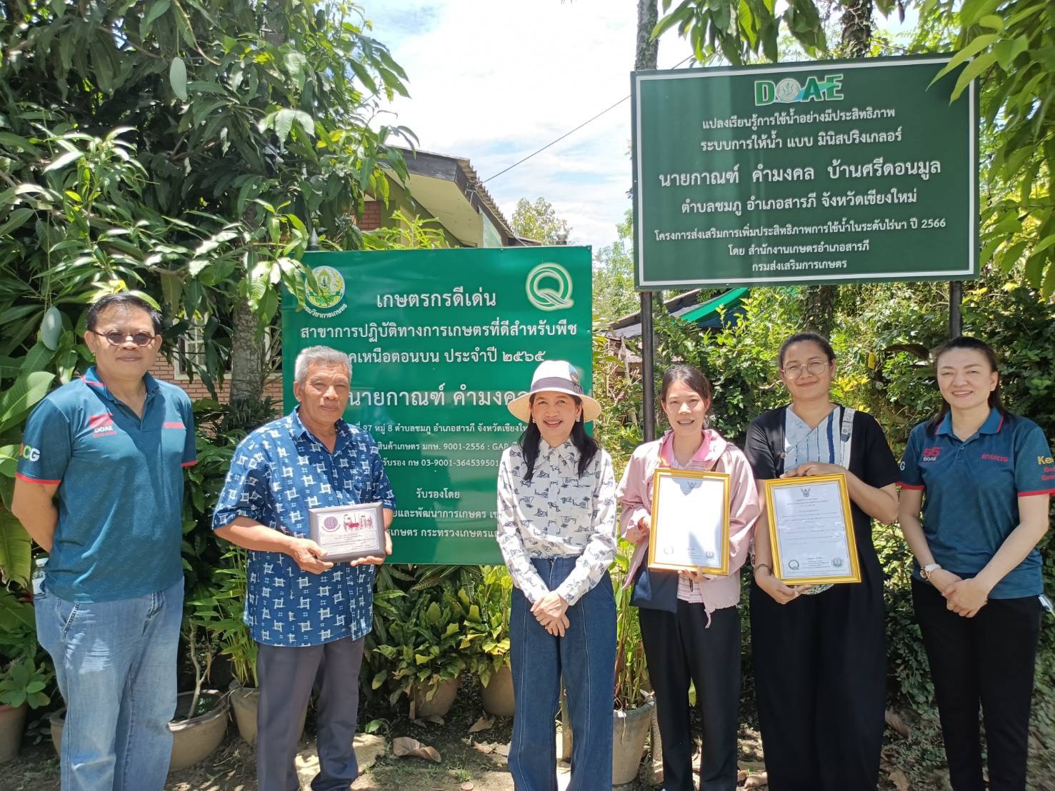 _____วันที่ 20 พฤษภาคม 2568 นางสาวประพิศพรรณ อนุพันธ์ ผู้อำนวยการกลุ่มคุณภาพและมาตรฐานสินค้าเกษตร พร้อมด้วยเจ้าหน้าที่กลุ่มคุณภาพและมาตรฐานสินค้าเกษตร ร่วมกับนายเทวา อินทราวุธ นักวิชาการส่งเสริมการเกษตร ศูนย์ส่งเสริมและพัฒนาอาชีพเกษตรกรจังหวัดเชียงใหม่ และเจ้าหน้าที่สำนักงานเกษตรอำเภอสารภี ได้เยี่ยมเยียน นายกาณฑ์ คำมงคล ประธานกลุ่มแปลงใหญ่ลำไยตำบลชมภู และเป็นเกษตรกรดีเด่นระดับประเทศ สาขาการปฏิบัติทางการเกษตรที่ดีสำหรับพืช อำเภอสารภี จังหวัดเชียงใหม่ เพื่อพูดคุยแลกเปลี่ยนข้อมูลการผลิตลำไย GAP ปัญหาและอุปสรรคของเกษตรกรในการปฏิบัติตามข้อกำหนดตามแนวทางการปฏิบัติทางการเกษตรที่ดีในพื้นที่ เพื่อหาแนวทางขับเคลื่อนงานส่งเสริมให้เกษตรกรมีความรู้ ความเข้าใจ การสร้าง/บริหารจัดการเครือข่าย และสามารถพัฒนาสินค้าให้ได้มาตรฐาน มีคุณภาพ รวมทั้งสร้างความเชื่อมั่นให้กับผู้บริโภค และแนวทางการเพิ่ม/รักษาความมั่นใจของผู้บริโภคที่มีต่อสินค้าเกษตรของกลุ่มแปลงใหญ่ลำไย