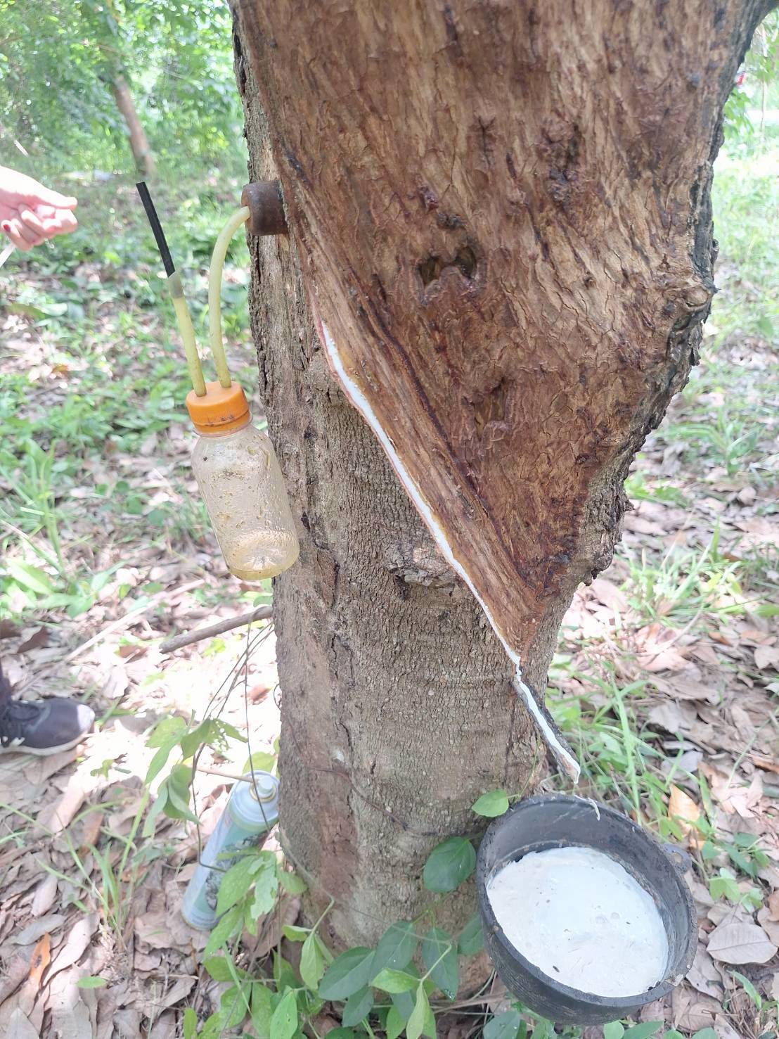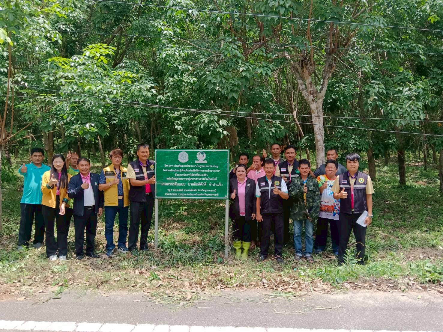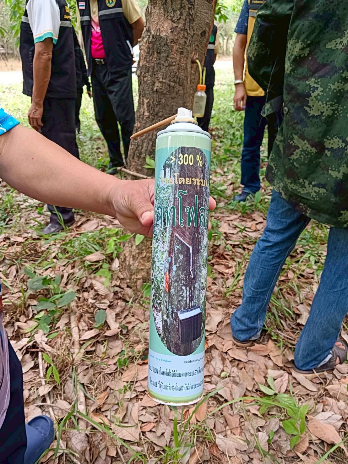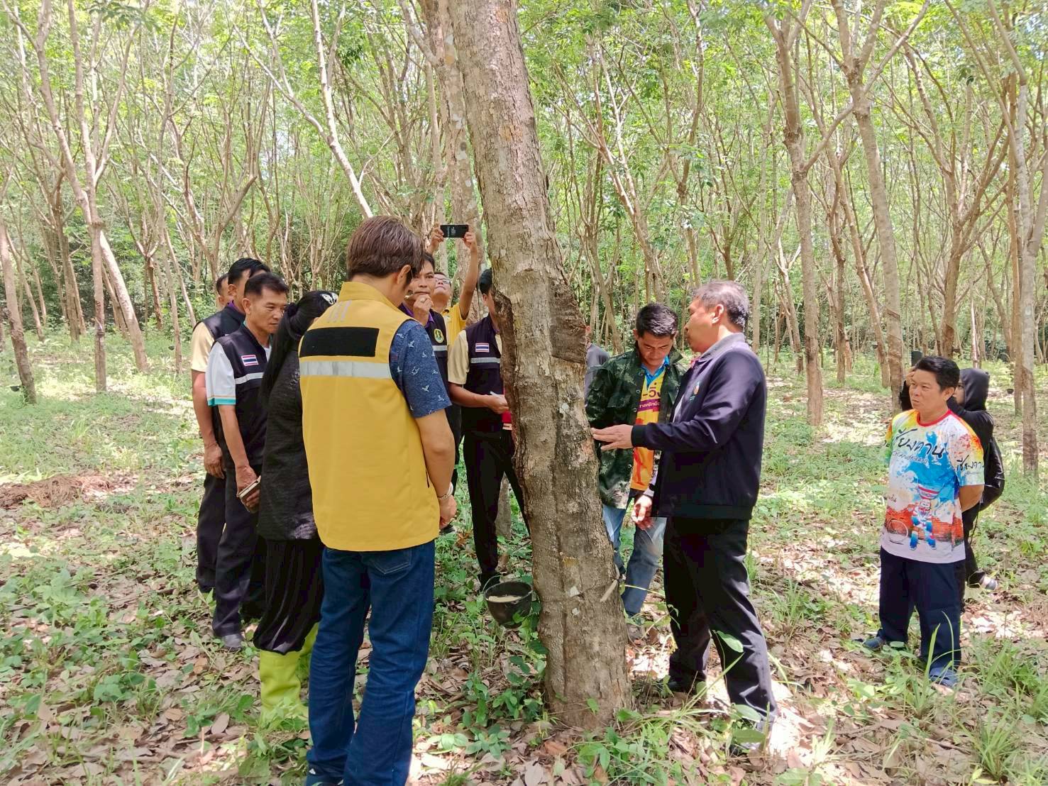 _____การติดตามงานโครงการในครั้งนี้ ซึ่งเป็นจุดที่ 2 มีวัตถุประสงค์เพื่อติดตามความก้าวหน้าการดำเนินโครงการ ผลการดำเนินโครงการที่ผ่านมา แผนการดำเนินการของกลุ่ม แผนบริหารจัดการความเสี่ยงของกลุ่มฯ แผนบริหารจัดการวัสดุเหลือใช้เพื่อลดการเผาทำลายป่า ปัญหาอุปสรรค แนวทางการแก้ไข การชี้แจงการเก็บรวบรวมฐาน และชมการสาธิตการใช้ก๊าซเอทิลีนฉีดอัดเข้าที่ต้นยางพาราเพื่อเร่งการไหลของน้ำยางพารา และข้อมูลการเข้าร่วมโครงการแปลงใหญ่ฯ (ยางพารา)