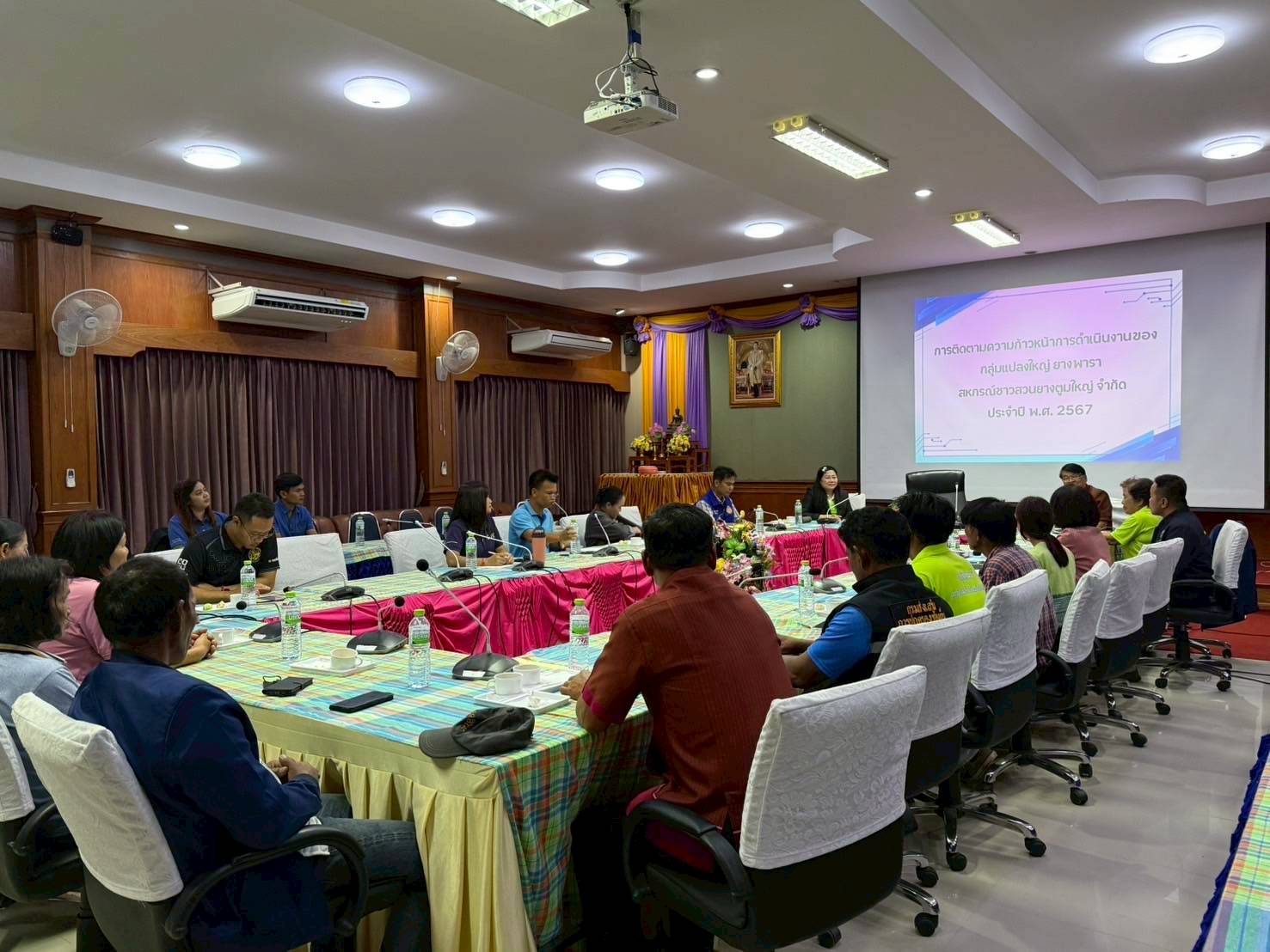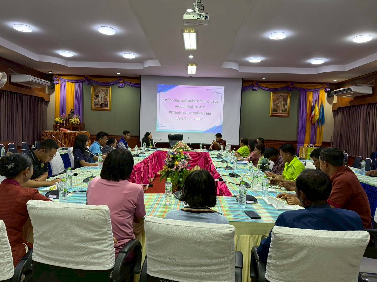วัตถุประสงค์เพื่อติดตามความก้าวหน้าการดำเนินโครงการ ผลการดำเนินโครงการที่ผ่านมา แผนการดำเนินการของกลุ่ม แผนบริหารจัดการความเสี่ยงของกลุ่ม แผนบริหารจัดการวัสดุเหลือใช้เพื่อลดการเผาทำลายป่า ปัญหาอุปสรรค แนวทางการแก้ไข และการชี้แจงการเก็บรวบรวมฐานข้อมูลการเข้าร่วมโครงการแปลงใหญ่(ยางพารา) ของจังหวัดบุรีรัมย์