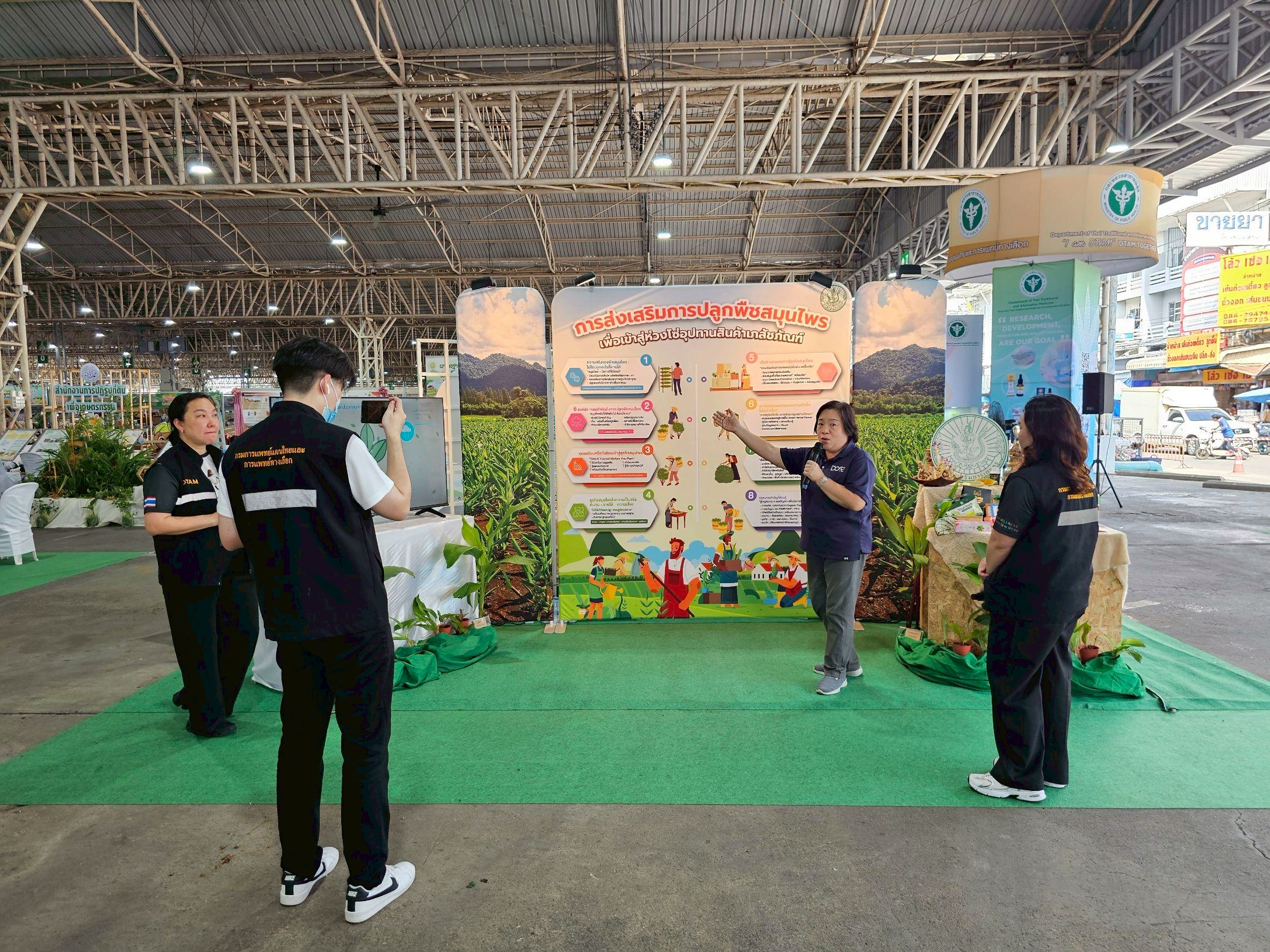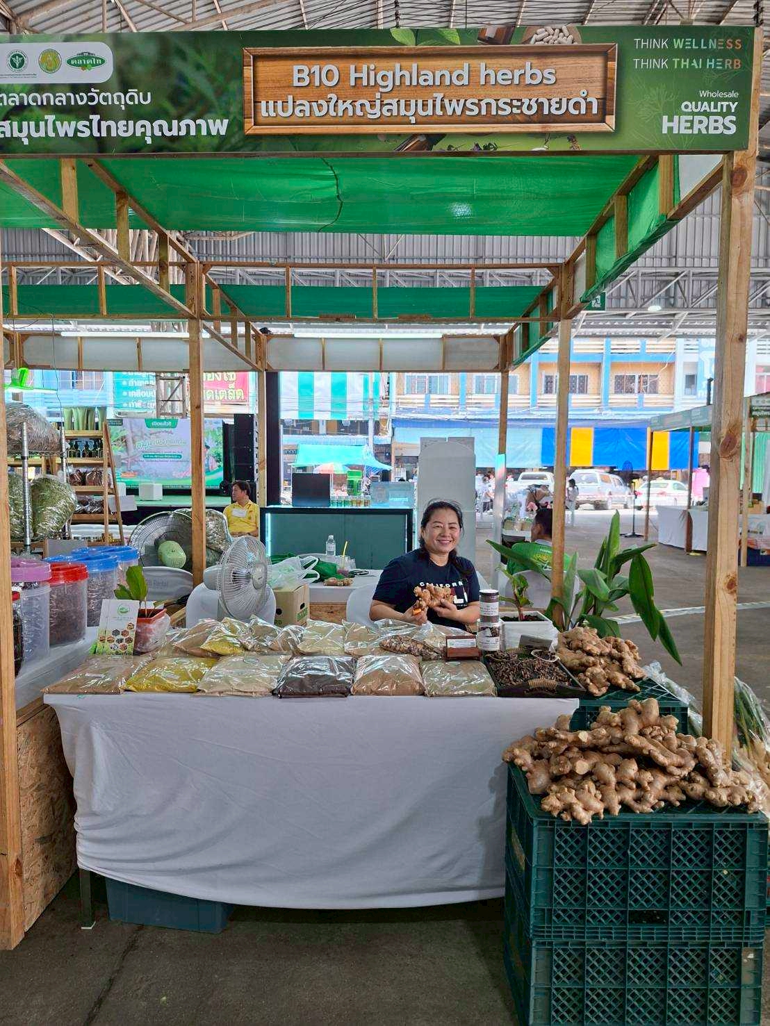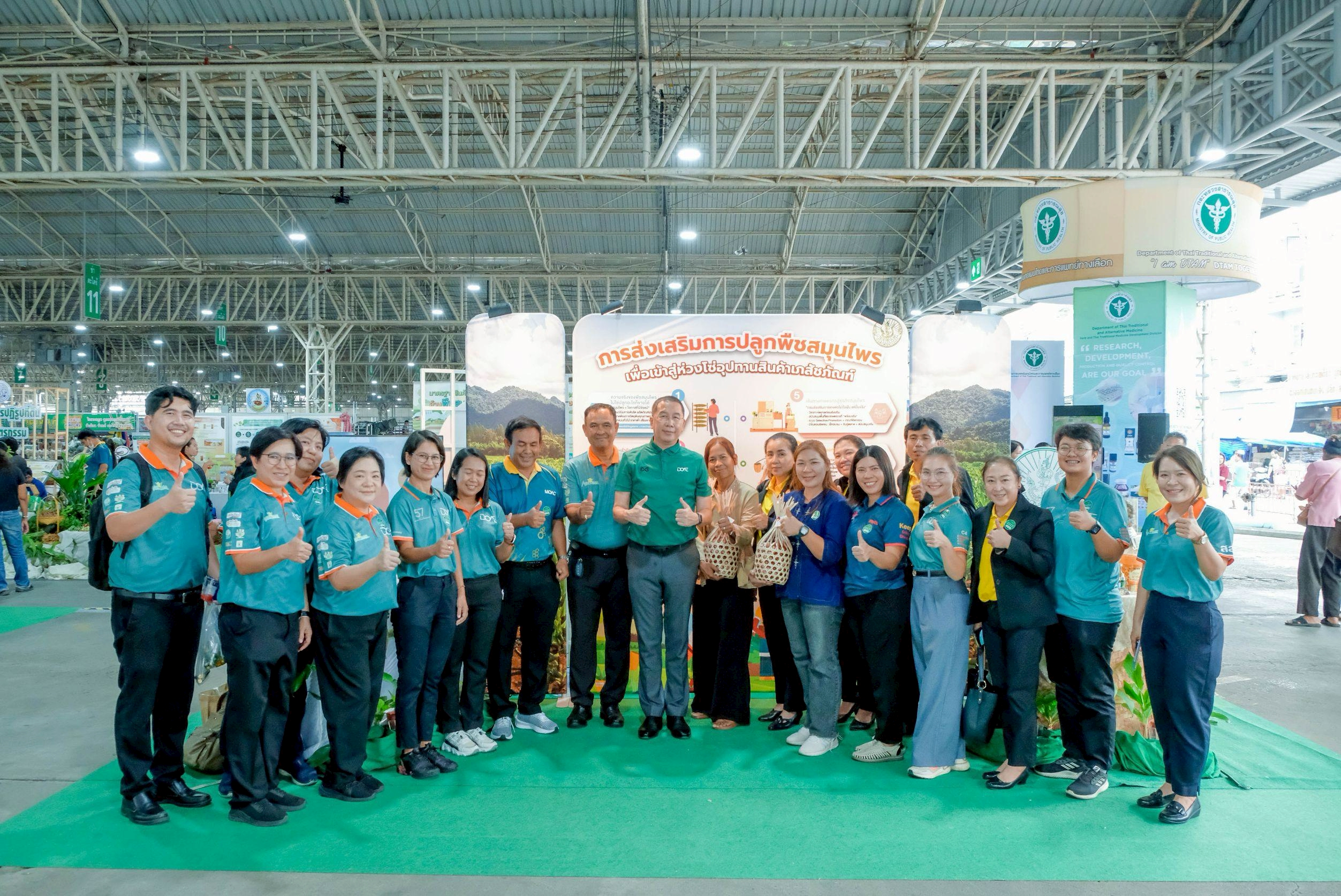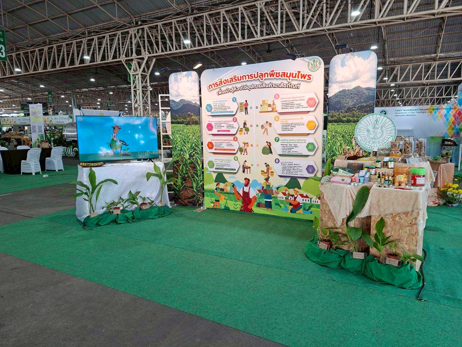 กลุ่มส่งเสริมพืชสมุนไพรและเครื่องเทศ ได้เข้าร่วมจัดนิทรรศการเพื่อประชาสัมพันธ์แนวทางการขับเคลื่อนการดำเนินงานส่งเสริมพืชสมุนไพรของกรมส่งเสริมการเกษตร เรื่อง การส่งเสริมการปลูกพืชสมุนไพรคุณภาพเพื่อเข้าสู่ห่วงโซ่อุปทานสินค้าเภสัชภัณฑ์ และนำกลุ่มเกษตรกรออกบูธจำหน่ายวัตถุดิบสมุนไพรในงาน Kick off ตลาดกลางวัตถุดิบสมุนไพร ณ ตลาดไท จังหวัดปทุมธานี ระหว่างวันที่ 6 – 10 มิถุนายน 2568 ซึ่งจัดพิธีเปิดงานเมื่อวันที่ 9 มิถุนายน 2568 โดยมี นายสมศักดิ์ เทพสุทิน รัฐมนตรีว่าการกระทรวงสาธารณสุข นายอิทธิ ศิริลัทธยากร รัฐมนตรีช่วยว่าการกระทรวงเกษตรและสหกรณ์ และนางสาววรามาศ ภัทรประสิทธิ์ ผู้อำนวยการใหญ่ บริษัท ไทย แอ็กโกร เอ็กซเชนจ์ จำกัด (ตลาดไท) ให้เกียรติเปิดงาน และเป็นสักขีพยานในพิธีลงนามบันทึกความเข้าใจ เรื่อง ตลาดกลางวัตถุดิบสมุนไพรคุณภาพ