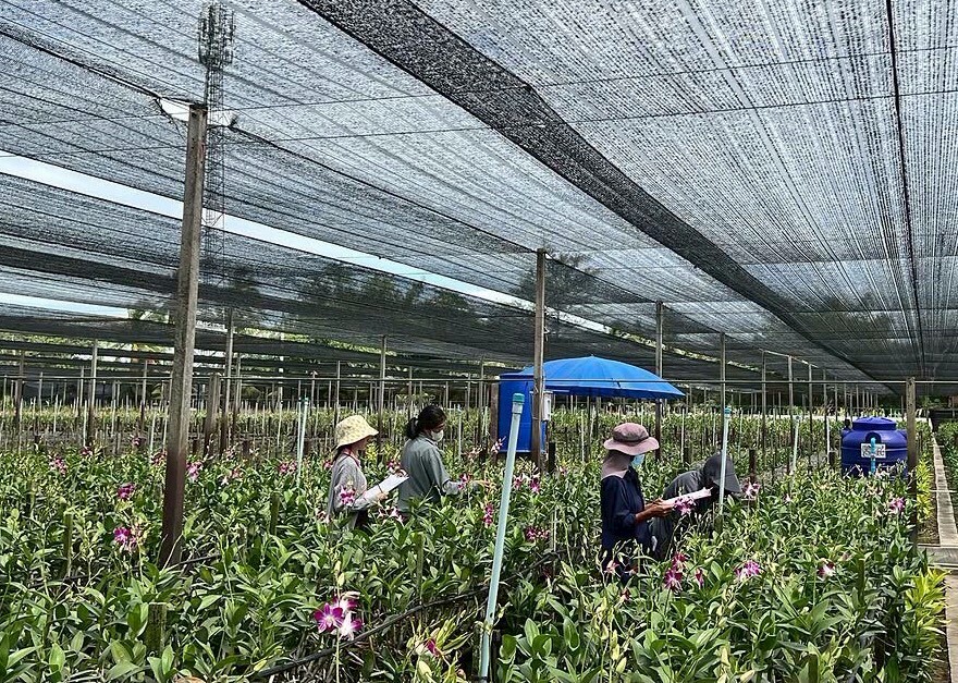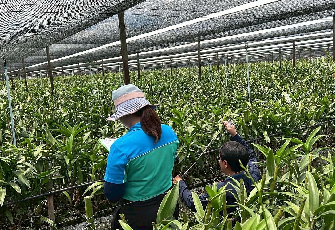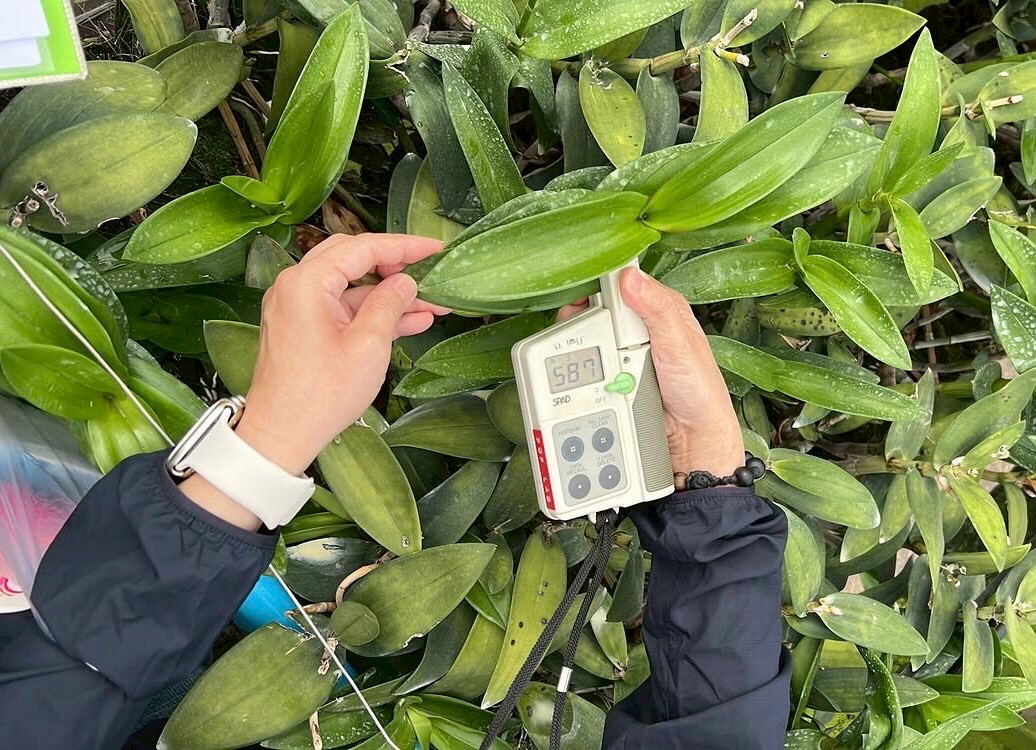 วันที่ 24 มิถุนายน 2568 นางสาวมารศรี วงศ์อนันทรัพย์ ผู้อำนวยการกลุ่มส่งเสริมไม้ดอกและไม้ประดับ และเจ้าหน้าที่กลุ่มส่งเสริมไม้ดอกและไม้ประดับ พร้อมด้วยเจ้าหน้าที่ศูนย์ส่งเสริมและพัฒนาอาชีพการเกษตร จังหวัดสมุทรสาคร เจ้าหน้าที่สำนักงานเกษตรอำเภอกระทุ่มแบน สำนักงานเกษตรจังหวัดสมุทรสาคร และสำนักงานเกษตรจังหวัดนครปฐม ร่วมลงพื้นที่ดำเนินการตามแผนการทดลอง ครั้งที่ 2 โดยเก็บข้อมูลด้านการเจริญเติบโตและการวัดปริมาณความเขียวใบ ด้วยเครื่องวัด SPAD meter ในโครงการทดสอบและถ่ายทอดเทคโนโลยีเพื่อเพิ่มผลิตภาพการผลิตสินค้าเกษตร ณ แปลงทดสอบและถ่ายทอดเทคโนโลยีการผลิต (กล้วยไม้) อ.กระทุ่มแบน จ.สมุทรสาคร และ อ.สามพราน จ.นครปฐม ในการดำเนินงานแปลงทดสอบการเพิ่มประสิทธิภาพการผลิตกล้วยไม้สกุลหวายตัดดอกด้วยการให้น้ำและปุ๋ยทางน้ำอย่างมีประสิทธิภาพผ่านระบบน้ำ Mini-Sprinkler และโครงการส่งเสริมและพัฒนาเพื่อเข้าสู่ห่วงโซ่อุปทานและบริการมูลค่าสูง(ไม้ดอกไม้ประดับ) จัดทำแปลงเพิ่มประสิทธิภาพการผลิตโดยวิธิผสมปุ๋ยใช้เอง