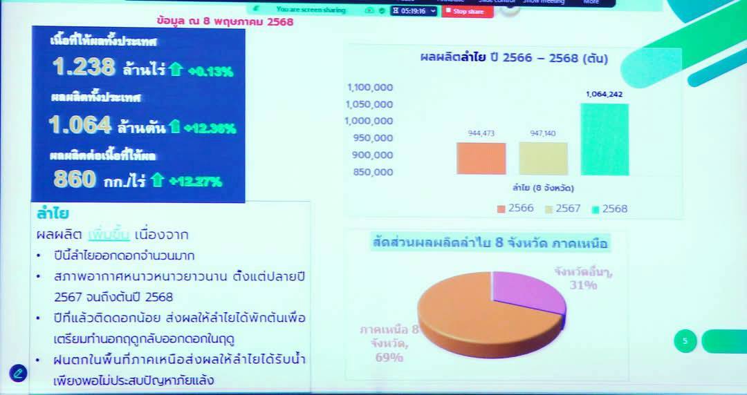 กรมส่งเสริมการเกษตรเข้าร่วมการประชุมคณะกรรมการกำหนดนโยบายการบริหารจัดการผลผลิตลำไยคุณภาพ ครั้งที่ 1/2568 โดยมี นายอรรถกร ศิริลัทธยากร รัฐมนตรีว่าการกระทรวงเกษตรและสหกรณ์ เป็นประธาน พร้อมทั้งนายอัครา พรหมเผ่า รัฐมนตรีช่วยว่าการกระทรวงเกษตรและสหกรณ์ เข้าร่วมด้วย ซึ่งการประชุม มีวัตถุประสงค์เพื่อเตรียมแผนบริหารจัดการผลิตลำไย ปี 2568 ที่คาดว่าจะเพิ่มขึ้น 142,111 ตัน จากปี 2567และออกกระจุกตัว (peak) ในเดือนกรกฎาคมถึงสิงหาคม ศกนี้ โดยที่ประชุมมีมติเห็นชอบ