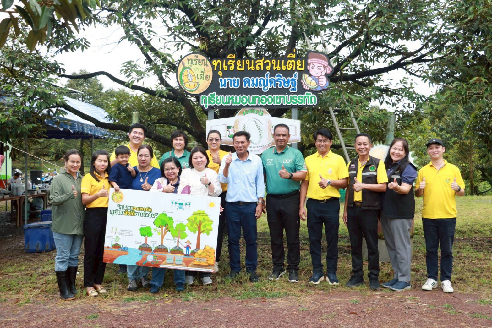 ___วันจันทร์ที่ 8 กันยายน 2568 คณะทำงานคัดเลือกเกษตรกรดีเด่น สาขาอาชีพทำสวน นำโดยนายวุฒิชัย ชิณวงศ์ ผู้อำนวยการสำนักส่งเสริมและจัดการสินค้าเกษตร พร้อมด้วยนายนิพิธ พินิจผล ผู้อำนวยการกองขยายพันธุ์พืช และนางสาวทัศนา คิดสร้าง ผู้อำนวยการกลุ่มส่งเสริมไม้ผล ลงพื้นที่แปลงทุเรียนของนายคมญ์คริษฐ์ กล่อมสังข์ เกษตรกรดีเด่นสาขาอาชีพทำสวน ตำบลไม้รูด อำเภอคลองใหญ่ จังหวัดตราด เพื่อดำเนินการพิจารณาคัดเลือกเกษตรกรดีเด่นระดับประเทศ สาขาอาชีพทำสวน ประจำปี พ.ศ. 2568 สำหรับแปลงทุเรียนของนายคมญ์คริษฐ์มีจุดเด่นในด้านองค์ความรู้การผลิตทุเรียนคุณภาพ การปลูกทุเรียนบนสวนหิน การยกโคกหิน การใช้นวัตกรรมยาฉุนห่อกระดาษหนังสือพิมพ์ป้องกันหนอนเจาะเมล็ดทุเรียน ระบบให้น้ำในทรงพุ่ม การใช้สารชีวภัณฑ์ไตรโคเดอร์มา และการทำน้ำหมักพ่อหลวงทดแทนการใช้สารเคมี การทำธนาคารน้ำใต้ดินเพื่อแก้ไขปัญหาน้ำท่วม ฯลฯ ส่งผลให้นายคมญ์คริษฐ์มีรายได้สุทธิหลายล้านบาทต่อปี และเป็นเกษตรกรต้นแบบด้านการทำสวนทุเรียนระดับประเทศของไทย