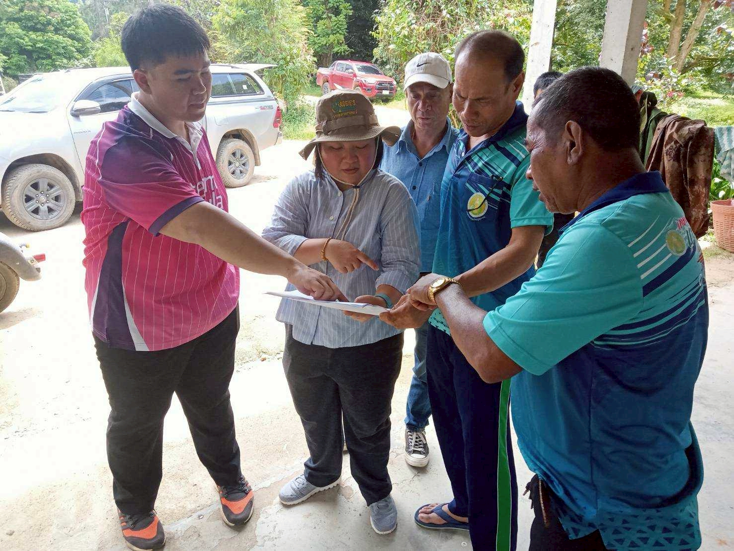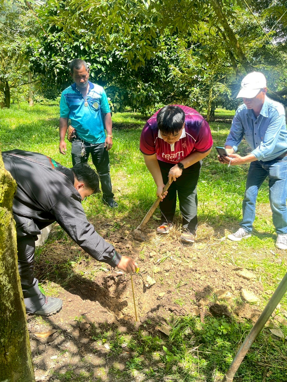 🔺วันที่ 11 กันยายน 2568 นางสาวเพ็ญระพี ทองอินทร์ ผู้เชี่ยวชาญด้านส่งเสริมและจัดการการผลิตไม้ผล ไม้ยืนต้น และยางพารา นางสาวทัศนา คิดสร้าง ผู้อำนวยการกลุ่มส่งเสริมไม้ผล สำนักส่งเสริมและจัดการสินค้าเกษตร และคณะ ร่วมกับเจ้าหน้าที่จากสำนักงานส่งเสริมและพัฒนาการเกษตร ที่ 5 จังหวัดสงขลา เจ้าหน้าที่กลุ่มส่งเสริมและพัฒนาการผลิต สำนักงานเกษตรจังหวัดชุมพร พร้อมด้วยเจ้าหน้าที่สำนักงานเกษตรอำเภอหลังสวน ร่วมลงพื้นที่ติดตามและดำเนินโครงการความร่วมมือระหว่างเยอรมัน – ไทย เพื่อจัดทำโครงการ T – VER ในสินค้าทุเรียน ณ แปลงใหญ่ทุเรียน ตำบลหาดยาย อำเภอหลังสวน จังหวัดชุมพร โดยมีเกษตรกรเข้าร่วม จำนวน 7 ราย ในการดำเนินจัดทำผังแปลงและกำหนดขอบเขตแปลงตัวอย่าง โดยใช้ drone ถ่ายภาพมุมสูงทางอากาศ พร้อมทั้งเก็บตัวอย่างดินวิเคราะห์ความหนาแน่นดินเพื่อนำไปคำนวณปริมาณการกักเก็บคาร์บอนในดิน ในการจัดทำข้อเสนอโครงการลดก๊าซเรือนกระจกภาคสมัครใจต่อไป