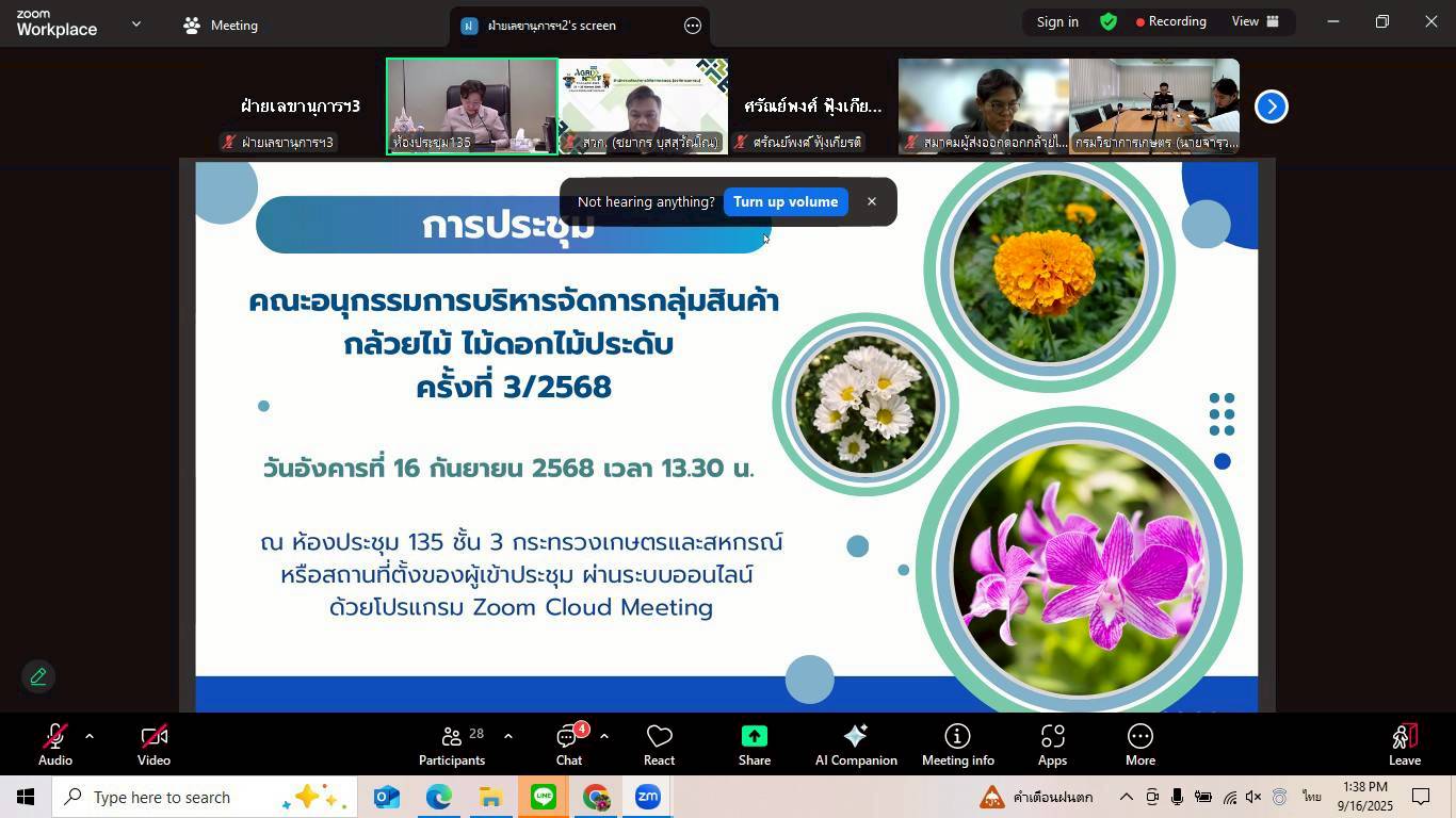 วันอังคารที่ 16 กันยายน 2568 เวลา 13.30 น. นายวีรศักดิ์ บุญเชิญ รองอธิบดีกรมส่งเสริมการเกษตร มอบหมายให้นายวุฒิชัย ชิณวงศ์ ผู้อำนวยการสำนักส่งเสริมและจัดการสินค้าเกษตร พร้อมด้วยนางสาวมารศรี วงศ์อนันทรัพย์ ผู้อำนวยการกลุ่มส่งเสริมไม้ดอกและไม้ประดับ และเจ้าหน้าที่กลุ่มส่งเสริมไม้ดอกและไม้ประดับ ดำเนินการจัดประชุมคณะอนุกรรมการบริหารจัดการกลุ่มสินค้ากล้วยไม้ ไม้ดอกไม้ประดับ ครั้งที่ 3/2568 ณ ห้องประชุม 135 กระทรวงเกษตรและสหกรณ์ และการประชุมผ่านระบบออนไลน์ Zoom Could Meeting โดยมี นางสาวภัทราภรณ์ โสเจยยะ รองปลัดกระทรวงเกษตรและสหกรณ์ เป็นประธานการประชุม พร้อมด้วยคณะอนุกรรมการจากหน่วยงานต่าง ๆ รวมถึงภาคเอกชน สหกรณ์ และสมาคมที่เกี่ยวข้องกับกลุ่มสินค้ากล้วยไม้ ไม้ดอกไม้ประดับ ที่ประชุมมีมติมอบหมายให้