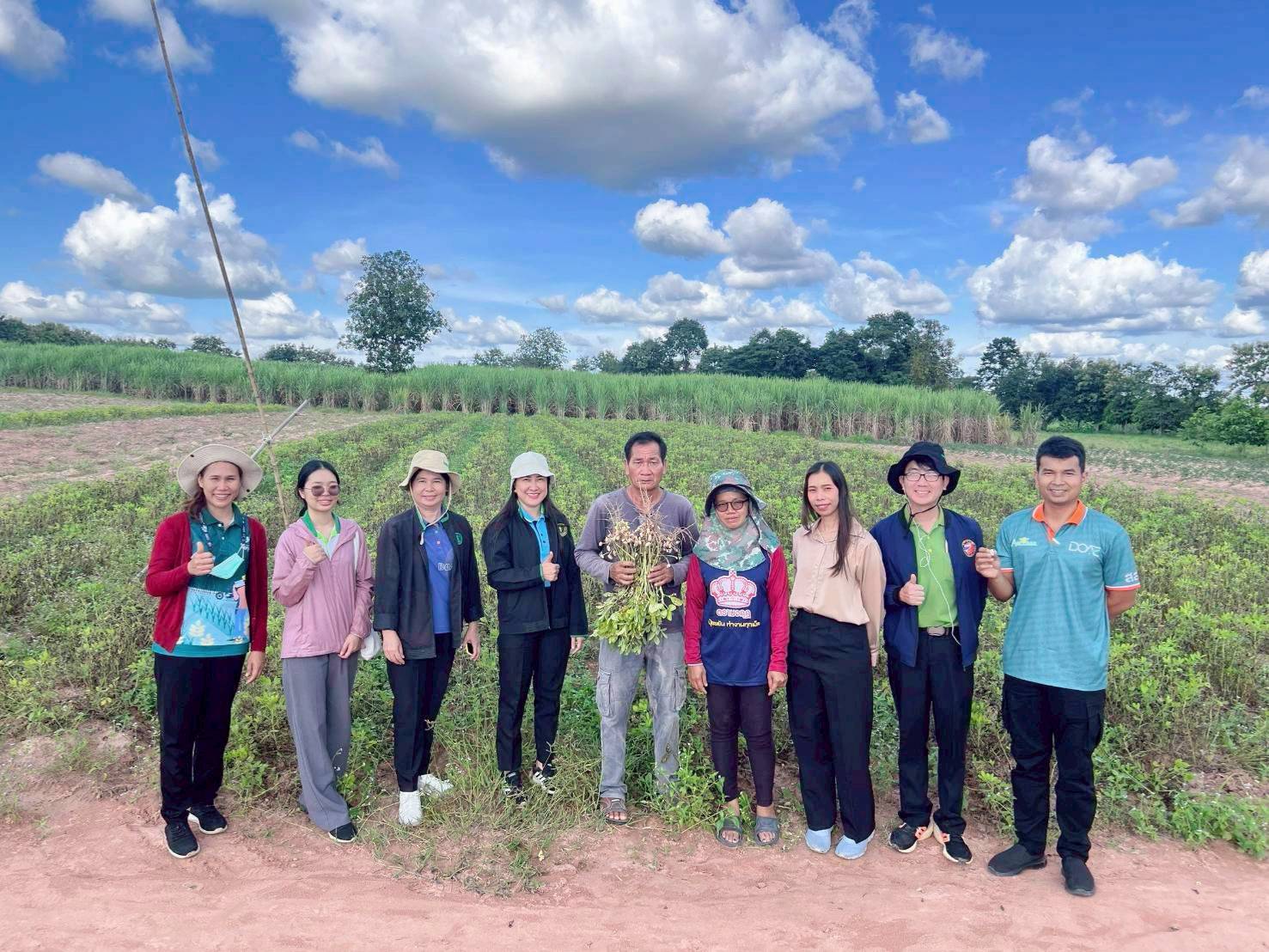 ว่าที่ร้อยเอกนัฐชัย แย้มพิกุลสกุล ผู้อำนวยการกลุ่มส่งเสริมพืชน้ำมันและพืชตระกูลถั่วนางสาวยุวรี บานเย็น นักวิชาการเกษตรชำนาญการ และนายมารุต โพธิ์ระเบียบ นักวิชาการเกษตรชำนาญการ ร่วมกับเจ้าหน้าที่สำนักงานเกษตรจังหวัดขอนเเก่น เจ้าหน้าที่สำนักงานเกษตรอำเภอกระนวน และสำนักงานเกษตรอำเภอชุมเเพ ร่วมติดตามการดำเนินงานโครงการทดสอบและถ่ายทอดเทคโนโลยีเพื่อเพิ่มผลิตภาพการผลิตสินค้าเกษตร (ถั่วลิสง และถั่วเหลือง) และสถานการณ์ผลิตพืชตระกูลถั่วในพื้นที่หมู่ 10 ตำบลบ้านฝาง อำเภอกระนวน และพื้นที่ตำบลนาหนองทุ่ม อำเภอชุมแพ จังหวัดขอนเเก่น