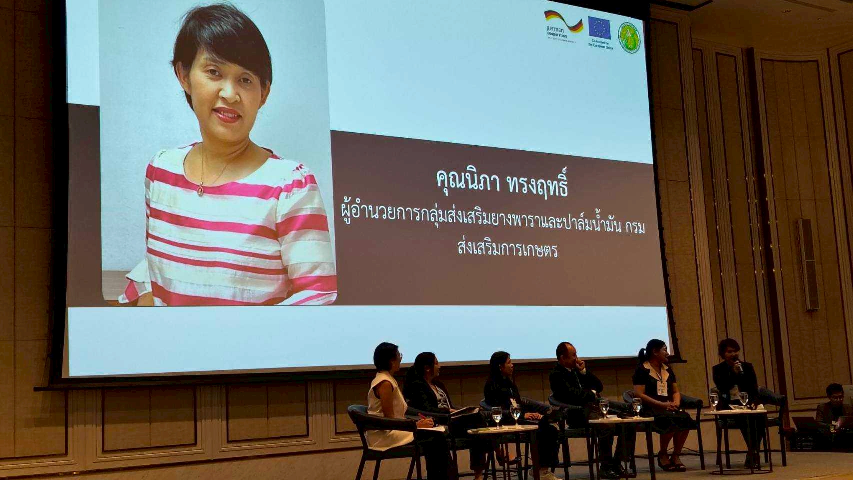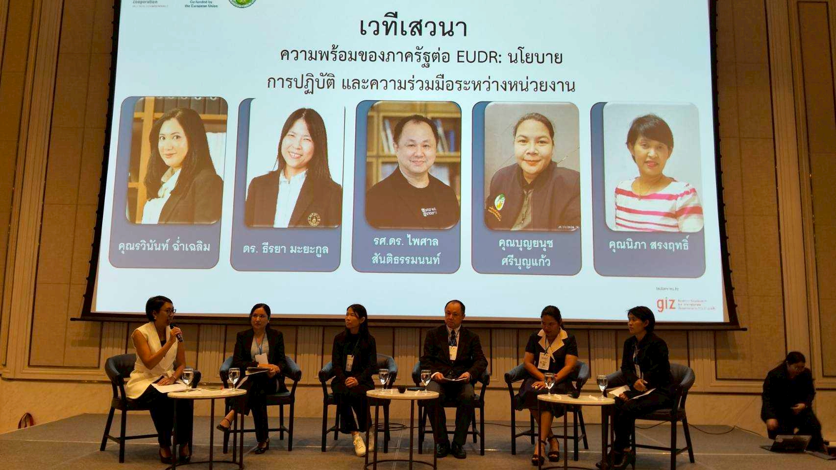 นายวุฒิชัย ชิณวงศ์ ผู้อำนวยการสำนักส่งเสริมและจัดการสินค้าเกษตร มอบหมายให้ นางสาวนิภา สงฤทธิ์ ผู้อำนวยการกลุ่มส่งเสริมยางพาราและปาล์มน้ำมัน นางสาวศันสนีย์ นิติธรรมยงค์ ผู้อำนวยการกลุ่มส่งเสริมไม้ยืนต้น พร้อมเจ้าหน้าที่ เข้าร่วมประชุมเชิงปฏิบัติการ หัวข้อ “Multiplier Workshop: From Awareness to Action – EUDR Readiness of Thailand’ Stakeholders” ในวันพฤหัสบดีที่ 18 กันยายน 2568 เวลา 9.00 – 15.30 น. ณ ห้องพญาไท 4 โรงแรมอีสติน แกรนด์ พญาไท กรุงเทพฯ จัดโดย องค์กรความร่วมมือระหว่างประเทศของเยอรมัน (GIZ) ร่วมกับสำนักงานมาตรฐานสินค้าเกษตรและอาหารแห่งชาติ (มกอช.) โดยมีนายชัยวัฒน์ โยธคล เลขาธิการสำนักงานมาตรฐานสินค้าเกษตรและอาหารแห่งชาติ เป็นผู้กล่าวเปิดงาน มีผู้แทนจากหน่วยงานทั้งภาครัฐ รัฐวิสาหกิจ และเอกชน เข้าร่วม ซึ่งการจัดงานในครั้งนี้มีวัตถุประสงค์เพื่อส่งเสริมการแลกเปลี่ยนเรียนรู้ความก้าวหน้าและการดำเนินการที่เกี่ยวข้องกับกฎระเบียบว่าด้วยสินค้าปลอดการตัดไม้ทำลายป่ายป่าของสหภาพยุโรป (EU Deforestation Regulation: EUDR) ของหน่วยงานภาครัฐและหน่วยงานด้านเทคนิคในประเทศไทย โดยการเสวนาประกอบด้วย มกอช. นำเสนอเกี่ยวกับนโยบาย EUDR ของประเทศไทย สำนักงานพัฒนาการวิจัยการเกษตร (องค์การมหาชน) นำเสนอเกี่ยวกับการตรวจสอบย้อนกลับ (trace ability) และ Geolocation Platform Digital ตามกฎระเบียบ EUDR และ นางสาวนิภา สงฤทธิ์ ผู้อำนวยการกลุ่มส่งเสริมยางพาราและปาล์มน้ำมัน นำเสนอเกี่ยวกับหลักเกณฑ์ในการขึ้นทะเบียนเกษตรกร และความคืบหน้าของการวาดผังแปลงเกษตรกรรมดิจิทัล เพื่อเตรียมพร้อมเป็นฐานข้อมูลในการตรวจสอบตามกฎระเบียบ EUDR ของปาล์มน้ำมัน โกโก้ กาแฟ และถั่วเหลือง ในฐานะกรมส่งเสริมการเกษตรเป็นหน่วยงานหลักคณะทำงานด้านสินค้าปาล์มน้ำมัน โกโก้ กาแฟ และถั่วเหลือง ซึ่งมีอธิบดีกรมส่งเสริมการเกษตรเป็นประธาน และผู้อำนวยการสำนักส่งเสริมและจัดการสินค้าเกษตรเป็นคณะทำงานและเลขานุการ