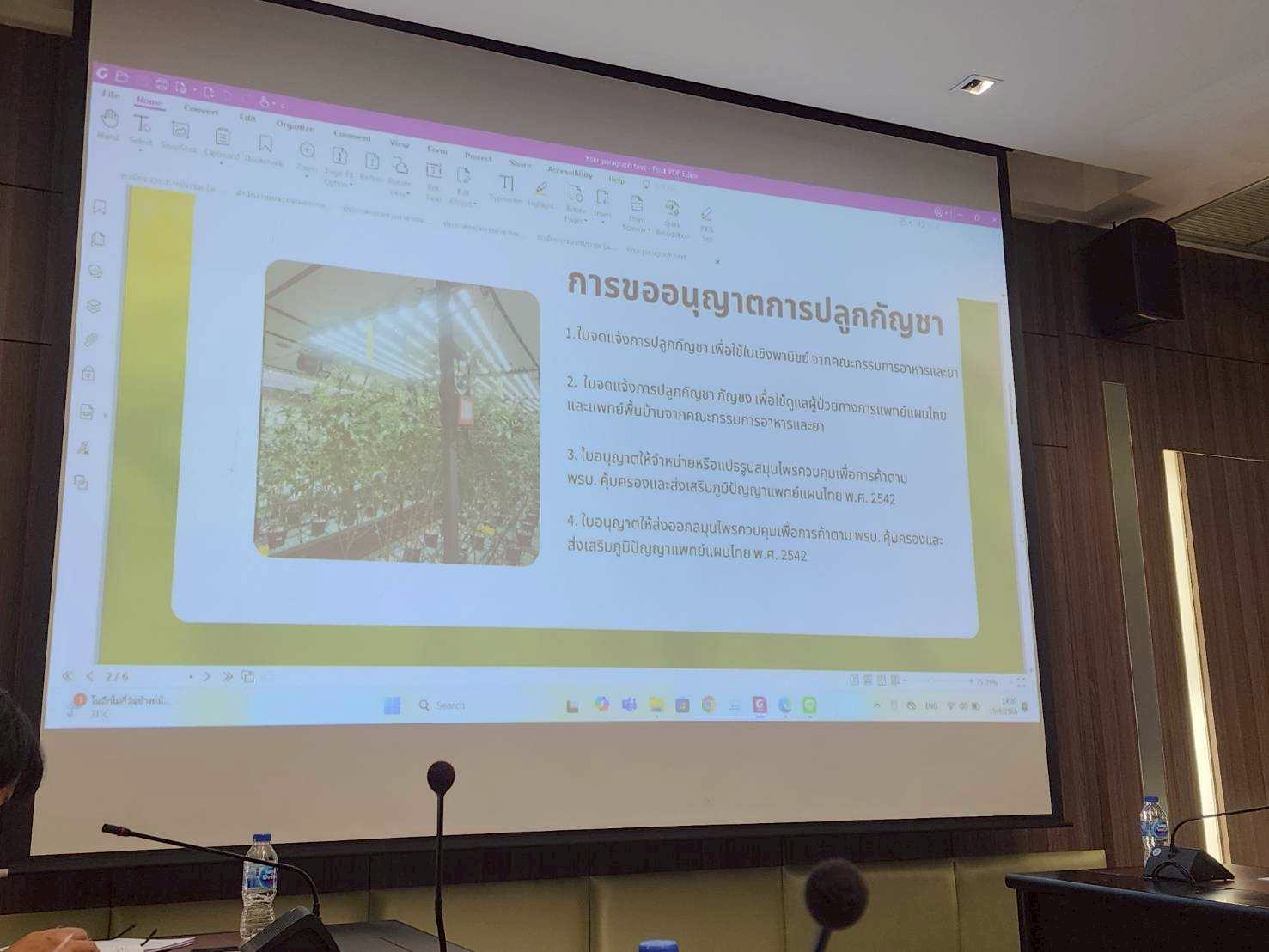 วันที่ 19 กันยายน 2568 นางสุกัญญา ตู้แก้ว ผู้อำนวยการกลุ่มส่งเสริมพืชสมุนไพรและเครื่องเทศ ร่วมประชุมพิจารณาแนวทางการแก้ไขปัญหาที่เกิดจากการกัญชาในเขตเมือง ณ ห้องประชุมพลเอกบุญเรือน บัวจรูญ ชั้น 1 อาคาร สำนักงานปลัดสำนักนายกรัฐมนตรี ทำเนียบรัฐบาล โดยมีนายนพพร บุญแก้ว รองปลัดสำนักนายกรัฐมนตรี เป็นประธาน เพื่อแจ้งสถานการณ์ปัญหากัญชาในเขตเมือง และพิจารณาแนวทางการแก้ไขปัญหาในประเด็นด้านสังคมและสาธารณสุข เนื่องจากประชาชนได้รับความเดือดร้อนรำคาญจากการปลูกกัญชาในเขตเมือง เช่น กลิ่น เสียง และประเด็นด้านกฎหมายที่ยังไม่มีความชัดเจน โดยที่ประชุมเสนอให้กระทรวงสาธารณสุขออกกฎหมายและระเบียบควบคุม กำกับ และดูแลตั้งแต่การปลูกกัญชา การขออนุญาต รวมถึงการบังคับใช้กฎร่วมกับหน่วยงานที่เกี่ยวข้อง