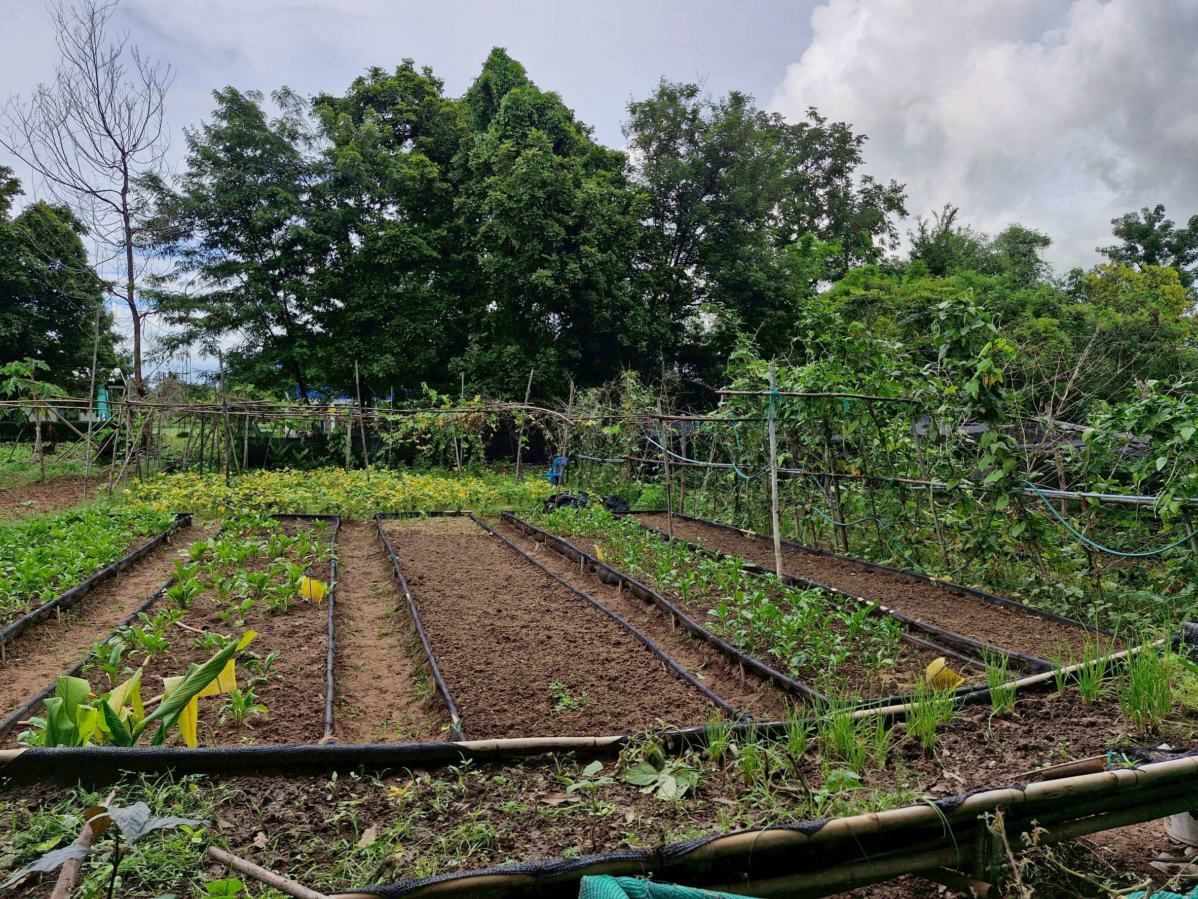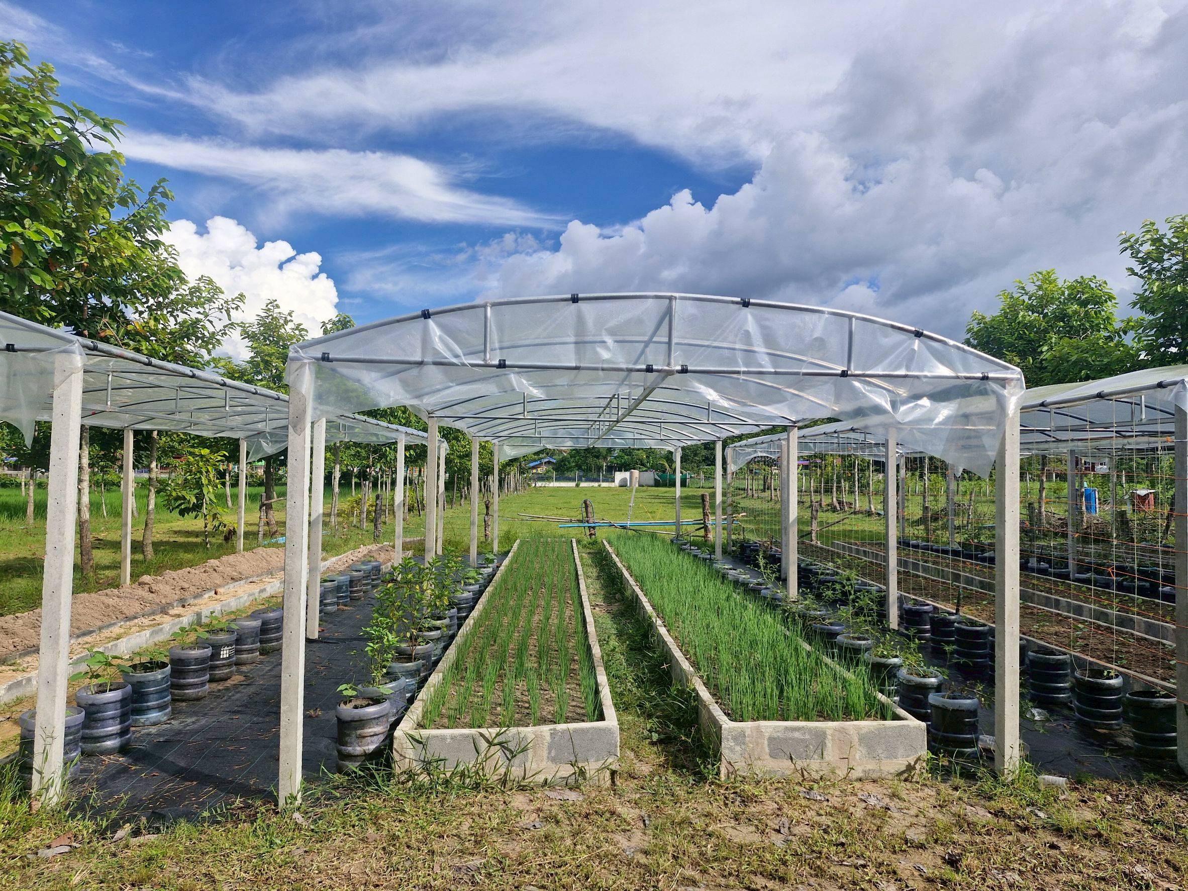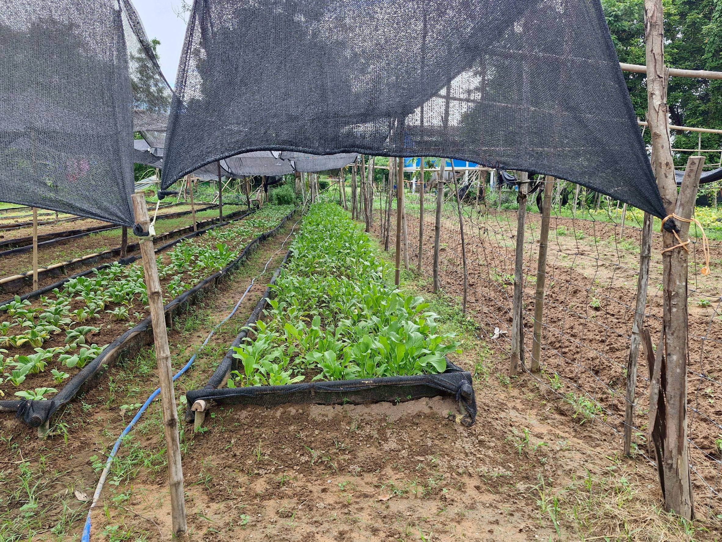 แปลงใหญ่ผักอินทรีย์บ้านคุณนาย อำเภอสมเด็จ จังหวัดกาฬสินธุ์ พบปัญหาต้นไม้ตายในฤดูแล้ง ทำให้แนวกันชนไม่สมบูรณ์ จึงร่วมกันหาชนิดพืชทนแล้งที่สามารถเป็นแนวกันชนได้มาทดลองปลูก