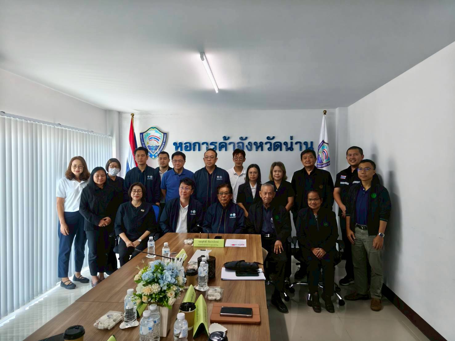 2. คณะฯ เข้าร่วมการประชุมหารือแนวทางการส่งเสริมการปลูกกาแฟโรบัสตาในพื้นที่จังหวัดน่าน ณ สำนักงานหอการค้าจังหวัดน่าน โดยมีวัตถุประสงค์เพื่อสนับสนุนให้เกิดการยกระดับเกษตรกร สร้างมูลค่าเพิ่ม และส่งเสริมด้านการตลาดสินค้าเกษตรมูลค่าสูง (กาแฟโรบัสตา) ให้ครอบคลุมทุกมิติทั้งต้นน้ำ กลางน้ำ และปลายน้ำ โดยมี นายชูศักดิ์ ชื่นประโยชน์ รองประธานกรรมการ และประธานคณะกรรมการเพิ่มมูลค่าพืชเกษตร เป็นประธานการประชุม ผู้เข้าร่วมประชุมประกอบด้วยผู้แทนหน่วยงานภาครัฐ เอกชนและสถาบันการศึกษา ได้แก่ สำนักงานพาณิชย์จังหวัดน่าน สำนักงานเกษตรและสหกรณ์จังหวัดน่าน ศูนย์ส่งเสริมและพัฒนาอาชีพการเกษตรจังหวัดน่าน ประธานสภาเกษตรกรจังหวัดน่าน หอการค้าจังหวัดน่าน บริษัท เครือเจริญโภคภัณฑ์ จำกัด และมหาวิทยาลัยพะเยา เข้าร่วมประชุม