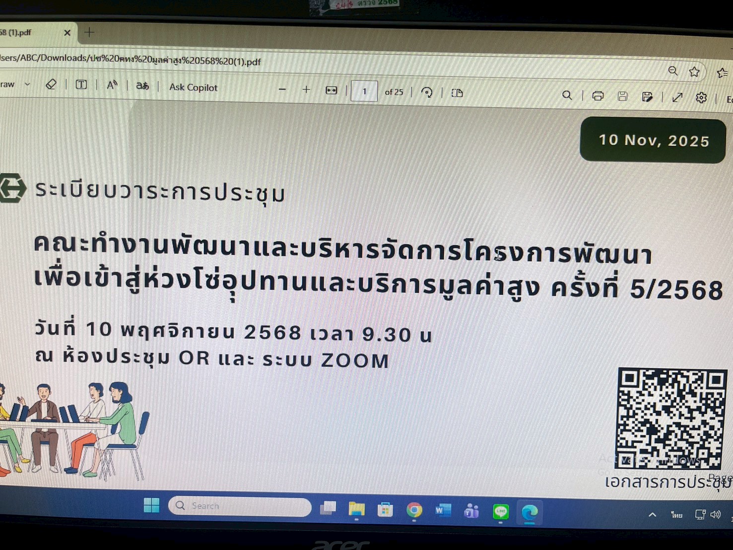 วันที่ 10 พฤศจิกายน 2568 นายพีรพันธ์ คอทอง อธิบดีกรมส่งเสริมการเกษตร เป็นประธาน นายวีรศักดิ์ บุญเชิญ รองอธิบดีกรมส่งเสริมการเกษตร นายวุฒิชัย ชิณวงศ์ ผู้อำนวยการสำนักส่งเสริมและจัดการสินค้าเกษตร นางสาวเพ็ญระพี ทองอินทร์ ผู้เชี่ยวชาญด้านส่งเสริมและจัดการการผลิตไม้ผล ไม้ยืนต้น และยางพารา ผู้อำนวยการกลุ่มกองสำนักในโครงการฯ และสำนักงานส่งเสริมและพัฒนาการเกษตร เขตที่ 1-6 โดยรายงานผลการวิเคราะห์ผลเชิงวิทยาศาสตร์และ Project Design พร้อมทั้งชี้แจงเรื่องงบประมาณรายจ่ายในปี 2569 และนำเสนอตัวอย่างแปลงที่ผ่านการวิเคราะห์ จากนั้นรายงานผลการประชุมโครงการสินค้าเกษตรและบริการมูลค่าสูง ปีงบประมาณ พ.ศ. 2569 ของกระทรวงเกษตรและสหกรณ์ พร้อมทั้งชี้แจงเรื่องตัวชี้วัดโครงการฯ ให้ที่ประชุมทราบ และต่อด้วยกองวิสาหกิจชุมได้นำเสนอการพัฒนาผลิตภัณฑ์ต้นแบบเพื่อสร้างมูลค่าเพิ่มสินค้าเกษตรมูลค่าสูง (Prototype Products) ในการจัดซื้อจัดจ้างพัฒนาผลิตภัณฑ์ งบประมาณ และจำนวนผลิตภัณฑ์