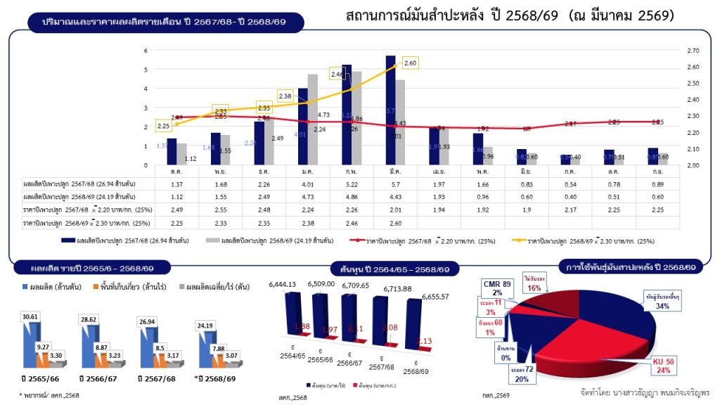 สถิติและสถานการณ์การผลิตมันสำปะหลัง ประจำเดือนมีนาคม 2569